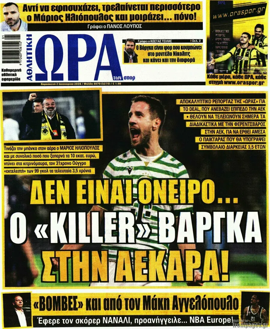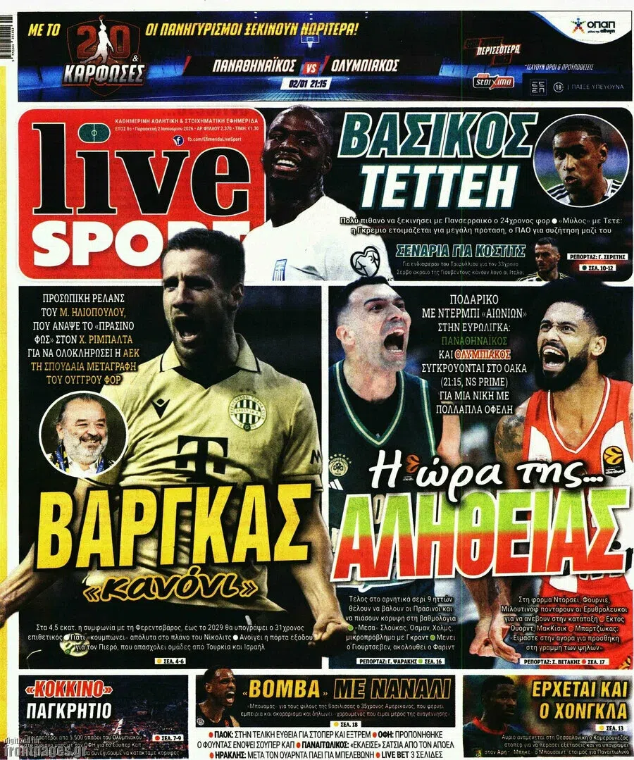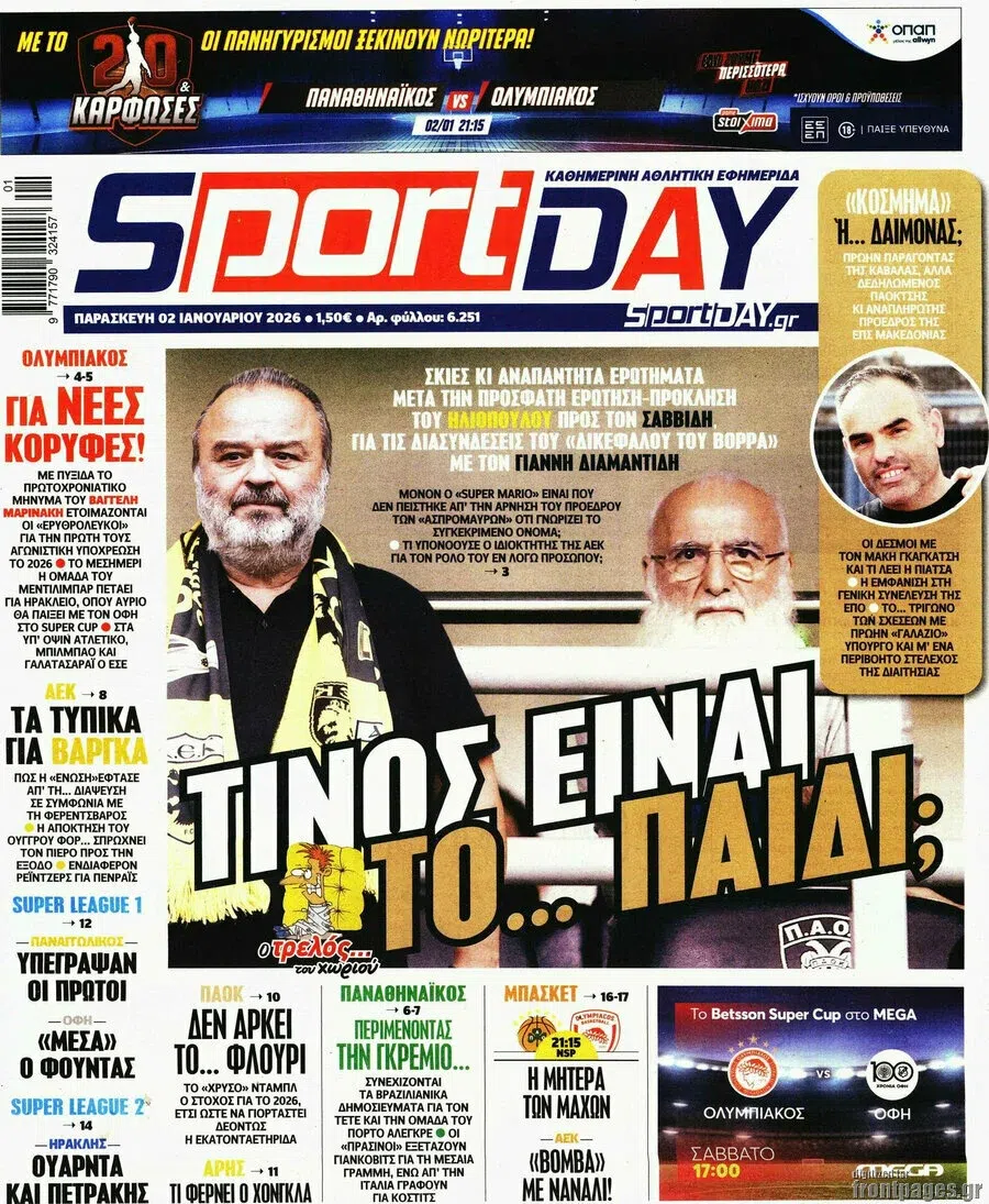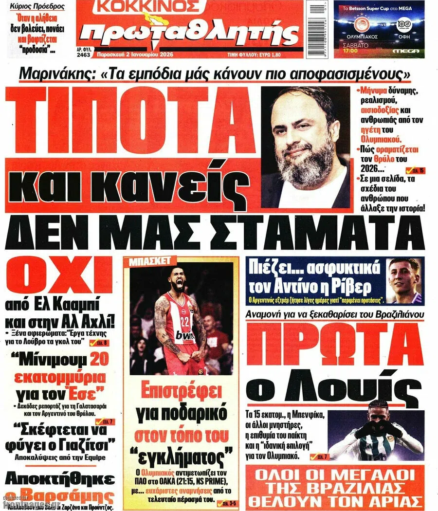 Δείτε τα πρωτοσέλιδα των αθλητικών εφημεριδών της Παρασκευής (2/1).