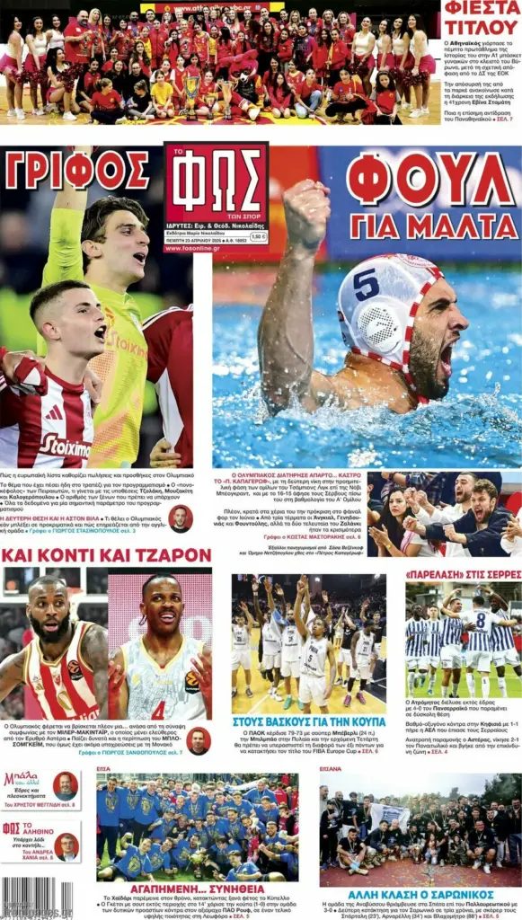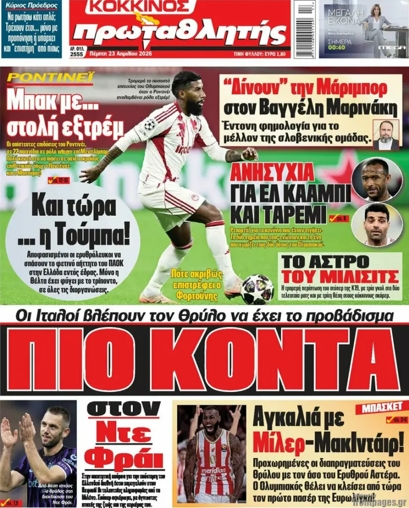 ΕΠΙΚΑΙΡΟΤΗΤΑ Πρωτοσέλιδα σήμερα (22/04): «Η ΑΕΚ ετοιμάζει την πρόταση για τον Πινέδα – Αγκαλιά με Μίλερ-Μακ Ιντάιρ » 07:40
