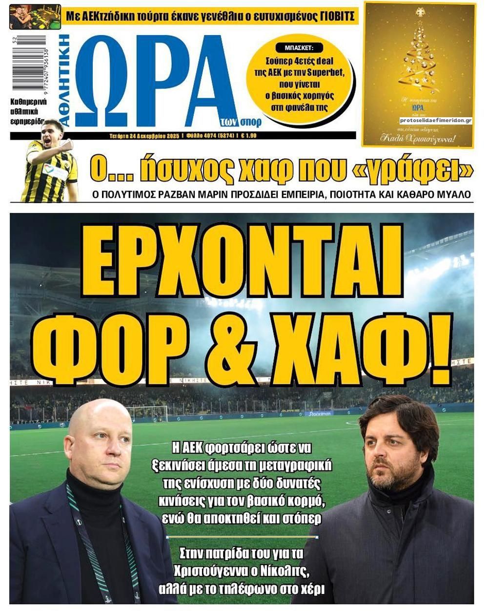 Δείτε μέσω της ενότητας του Sportal όλα τα πρωτοσέλιδα των αθλητικών εφημερίδων, για τη Δευτέρα 22 Δεκεμβρίου 2025.