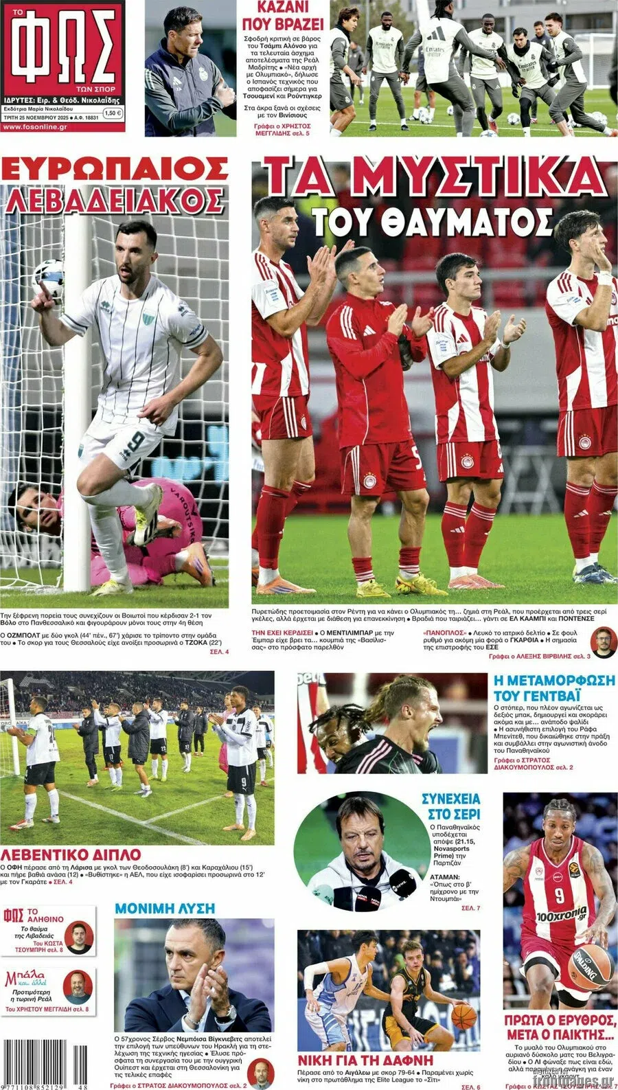 Δείτε μέσω της ενότητας του Sportal όλα τα πρωτοσέλιδα των αθλητικών εφημερίδων.