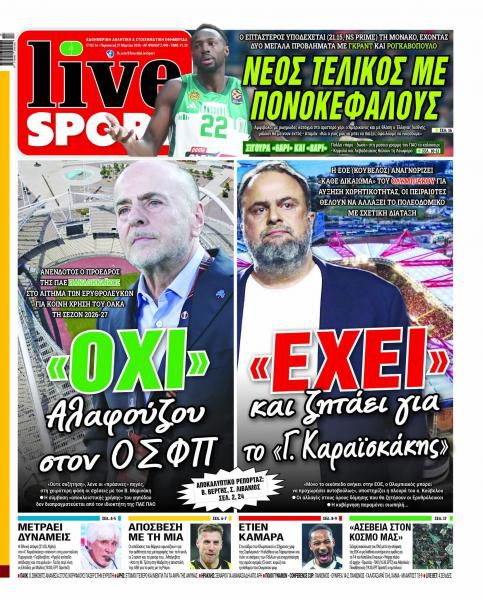 Δείτε τα πρωτοσέλιδα των αθλητικών εφημερίδων της Πέμπτης (26/03).