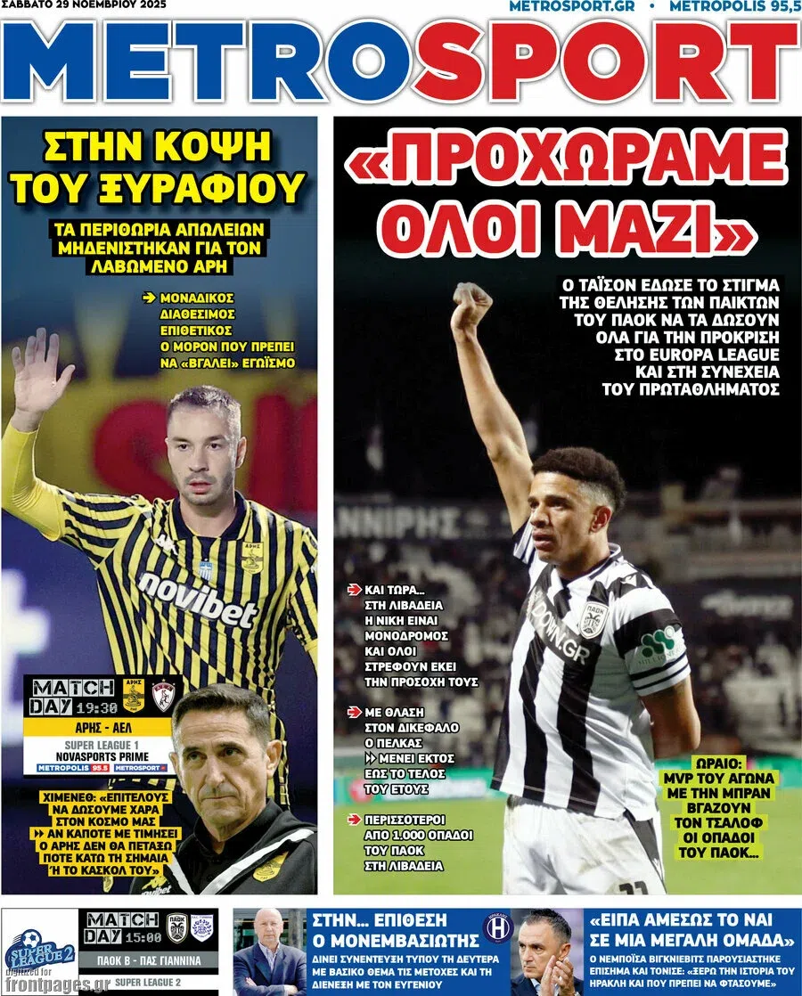 Δείτε μέσω της ενότητας του Sportal όλα τα πρωτοσέλιδα των αθλητικών εφημερίδων για την Παρασκευή 28 Νοεμβρίου.