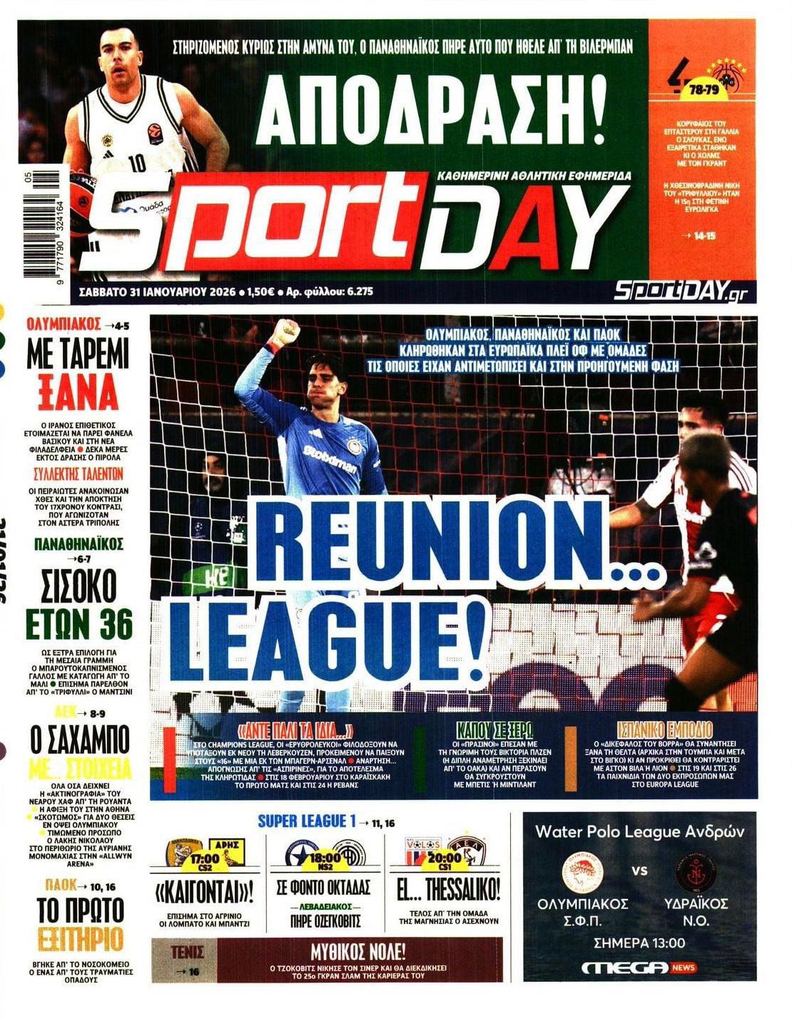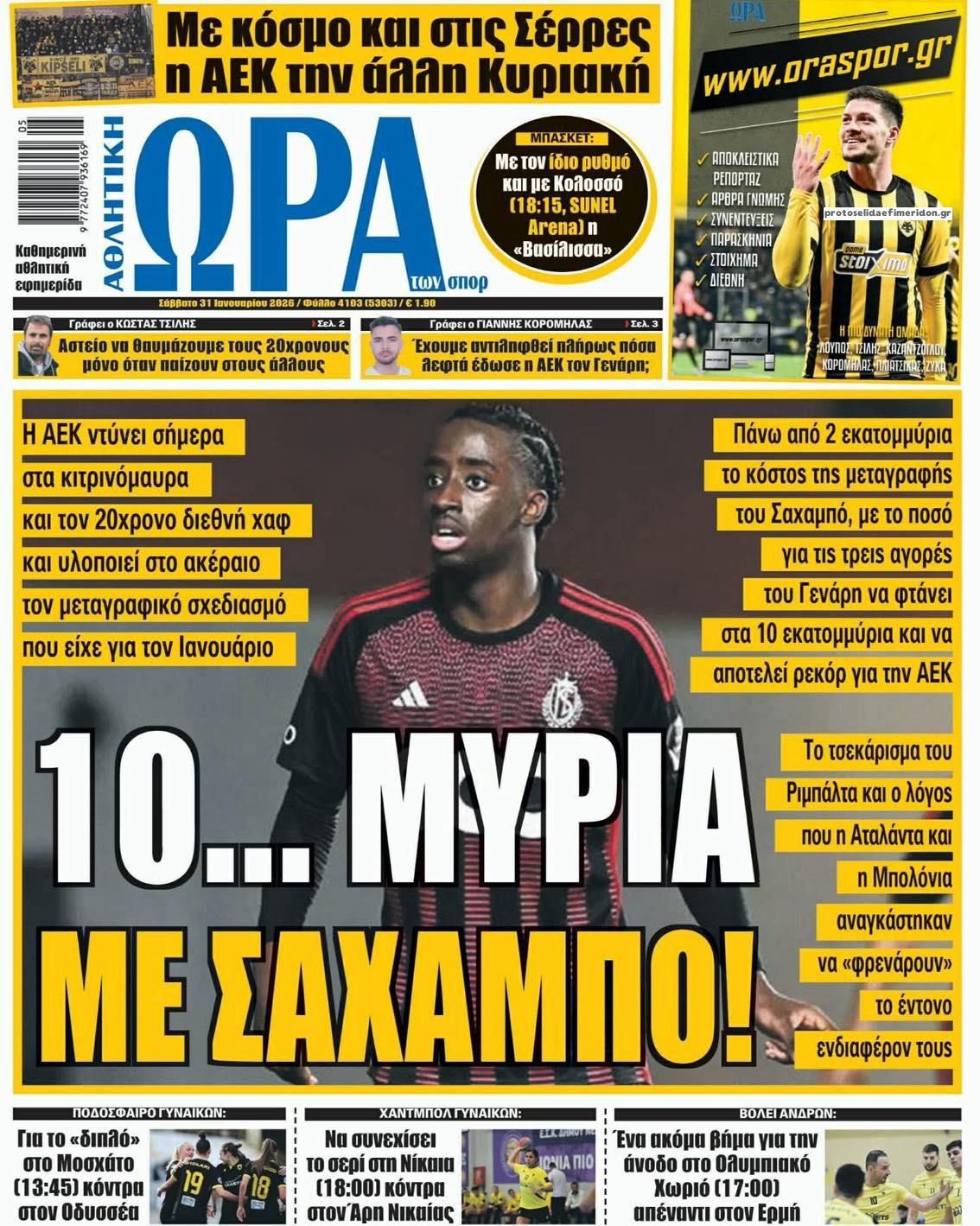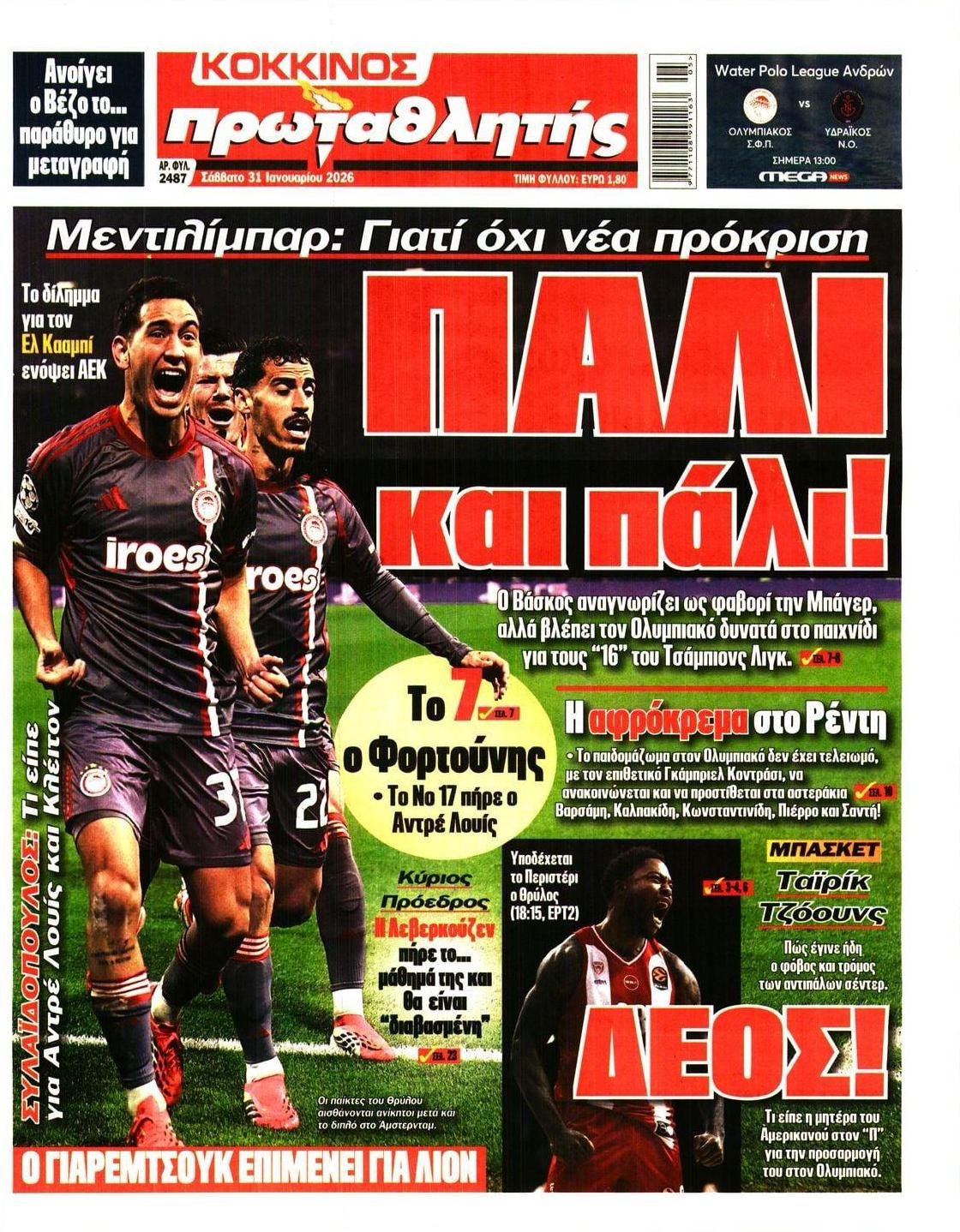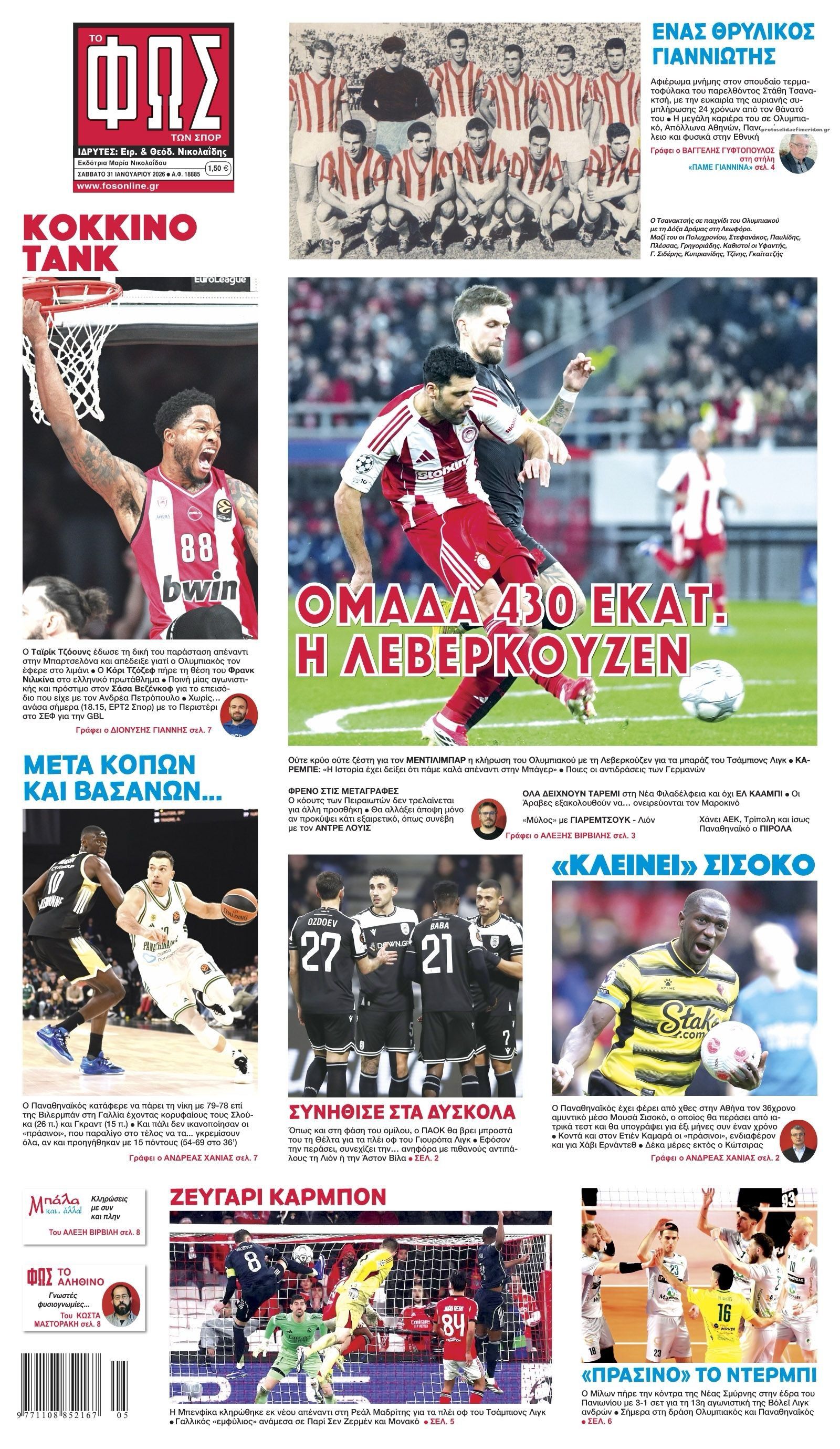 Δείτε τα πρωτοσέλιδα των αθλητικών εφημερίδων του Σαββάτου (31/01).