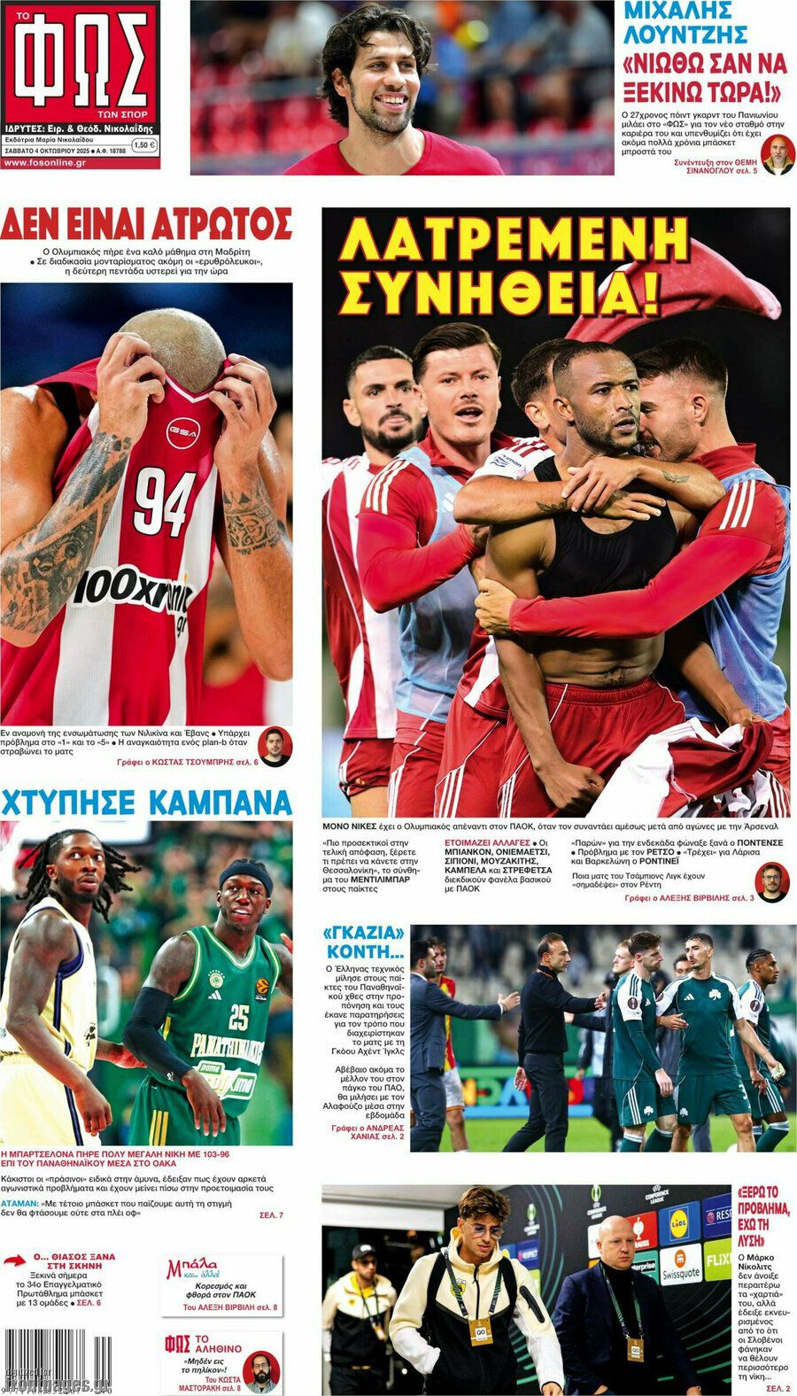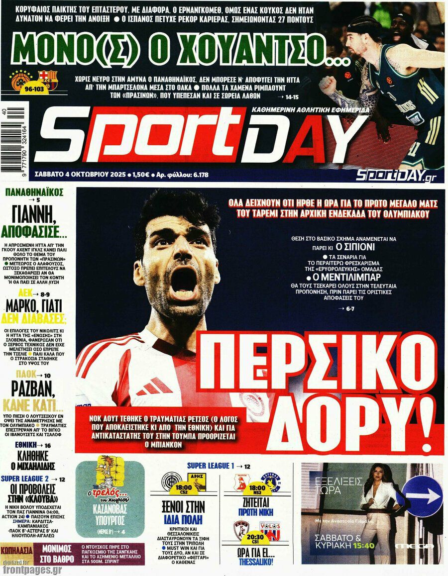 Δείτε μέσω της ενότητας του Sportal όλα τα πρωτοσέλιδα των αθλητικών εφημερίδων.