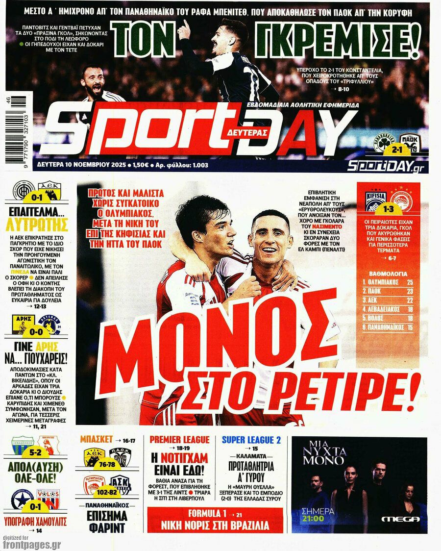 Δείτε μέσω της ενότητας του Sportal όλα τα πρωτοσέλιδα των αθλητικών εφημερίδων.