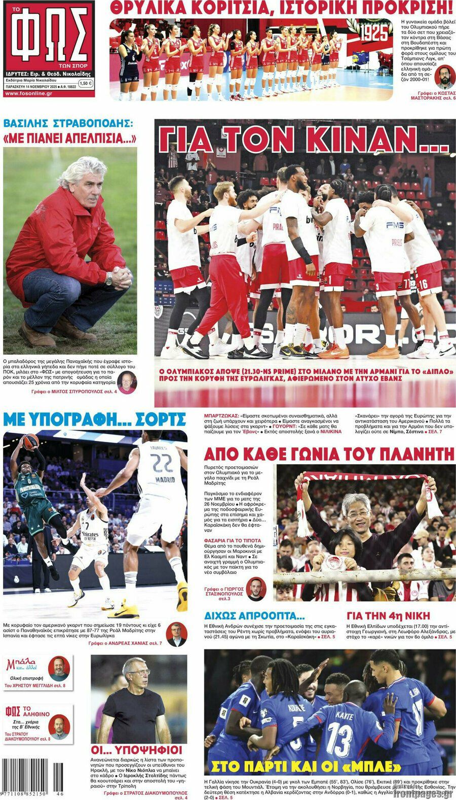 Δείτε μέσω της ενότητας του Sportal όλα τα πρωτοσέλιδα των αθλητικών εφημερίδων.