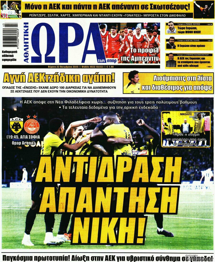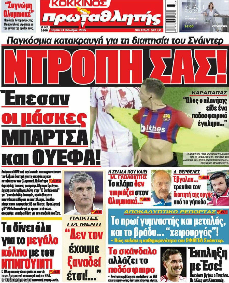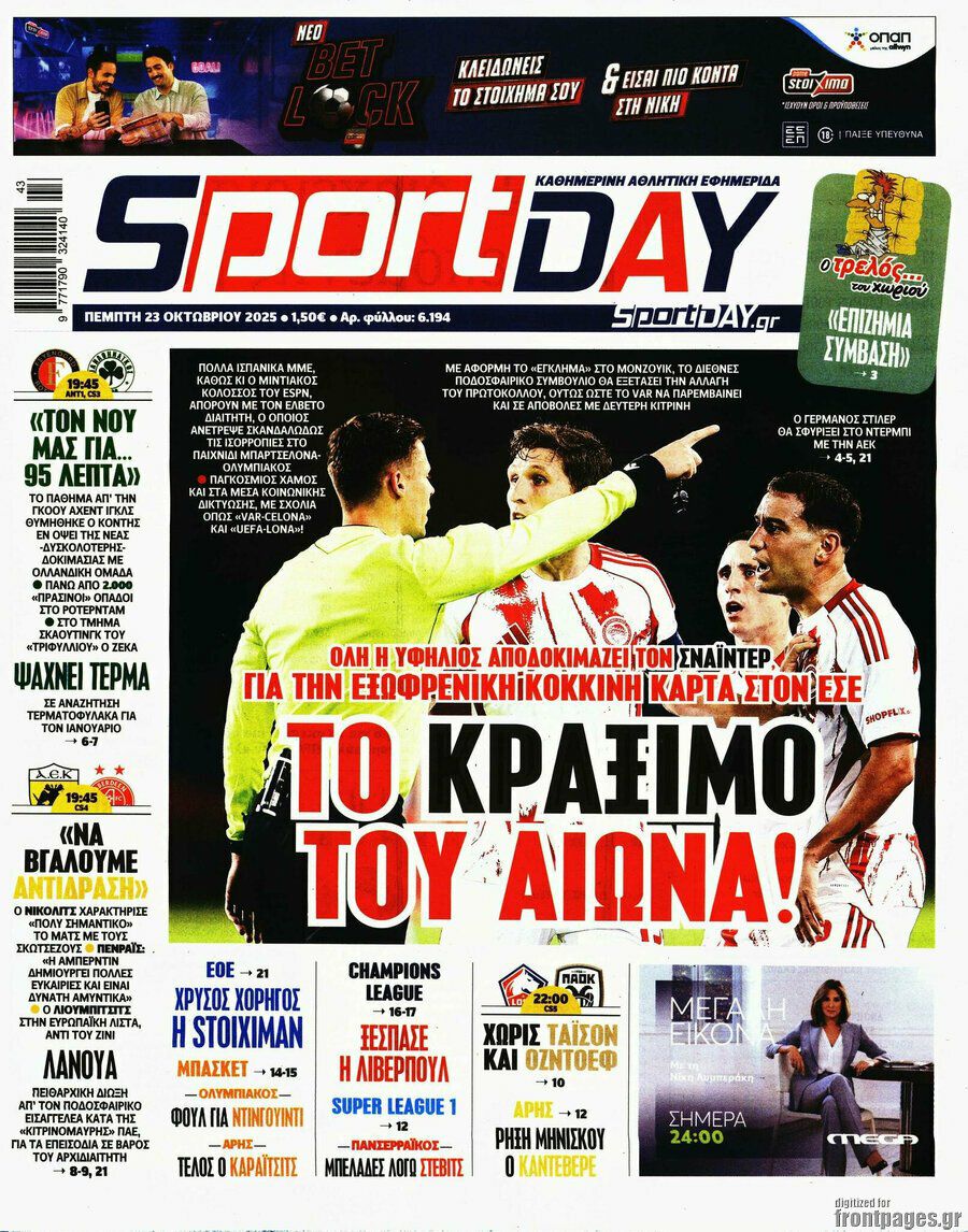 Δείτε μέσω της ενότητας του Sportal όλα τα πρωτοσέλιδα των αθλητικών εφημερίδων.