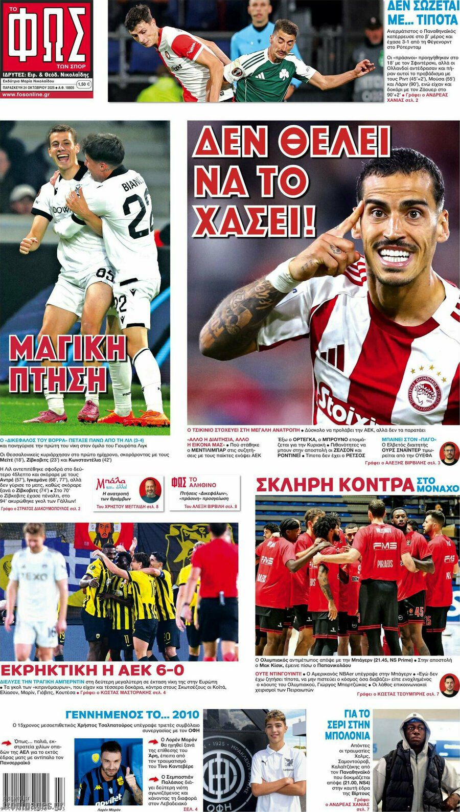 Δείτε μέσω της ενότητας του Sportal όλα τα πρωτοσέλιδα των αθλητικών εφημερίδων.