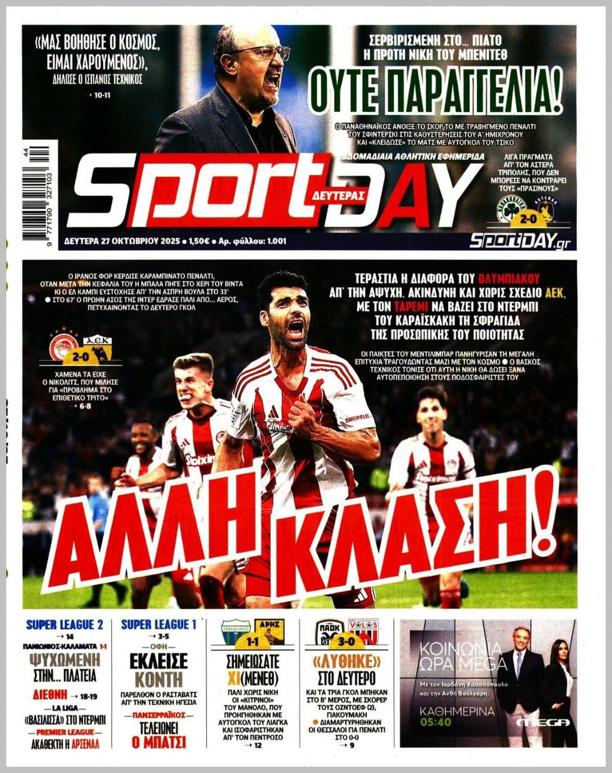 Δείτε μέσω της ενότητας του Sportal όλα τα πρωτοσέλιδα των αθλητικών εφημερίδων.