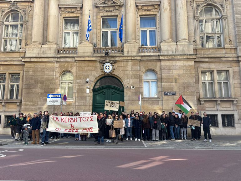 Έξω από την Ελληνική Πρεσβεία στη Βιέννη, πραγματοποιήθηκε συγκέντρωση για τις 57 αδικοχαμένες ψυχές της τραγωδίας των Τεμπών.
