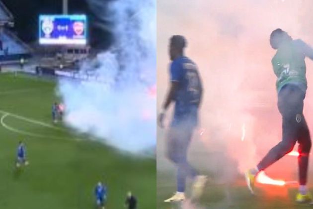 Χαμός στο Τρουά - Βαλενσιέν: Οι οπαδοί των γηπεδούχων πέταξαν φωτοβολίδες και οι παίκτες τις έριξαν πίσω στην εξέδρα (vid)