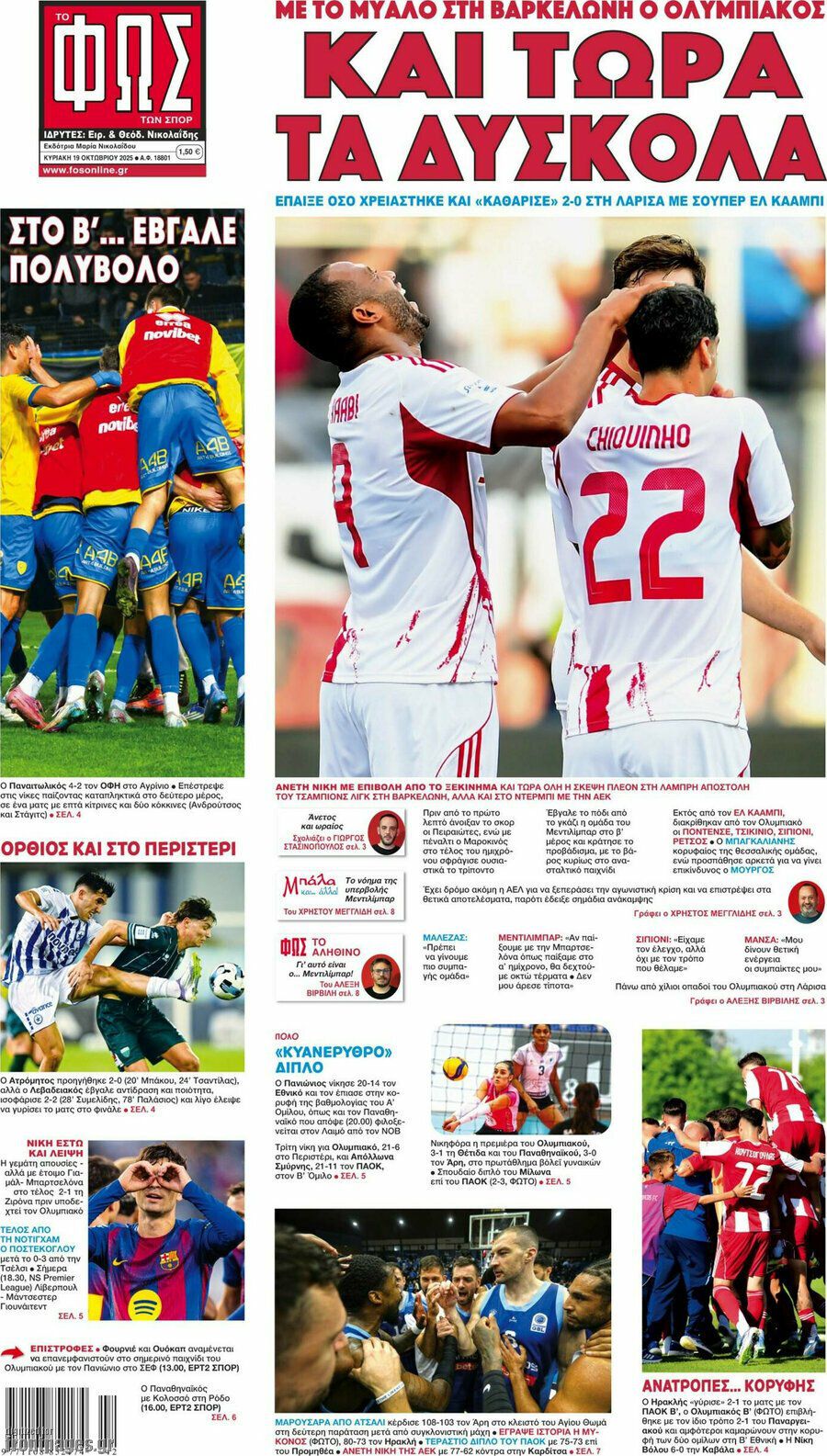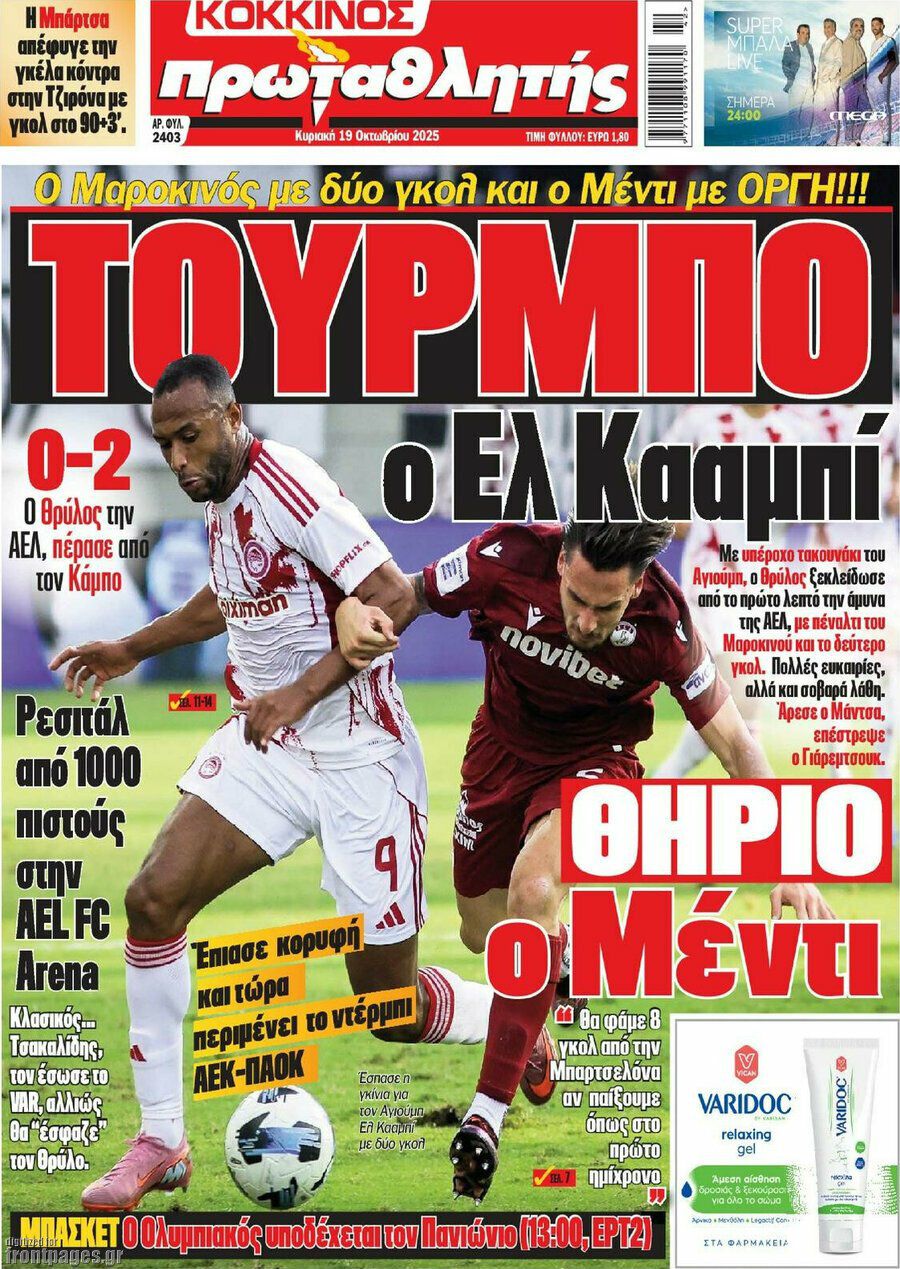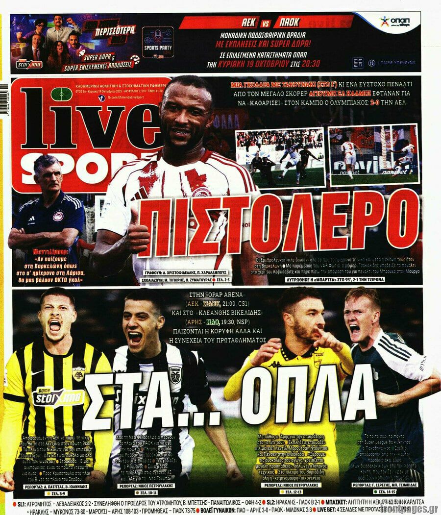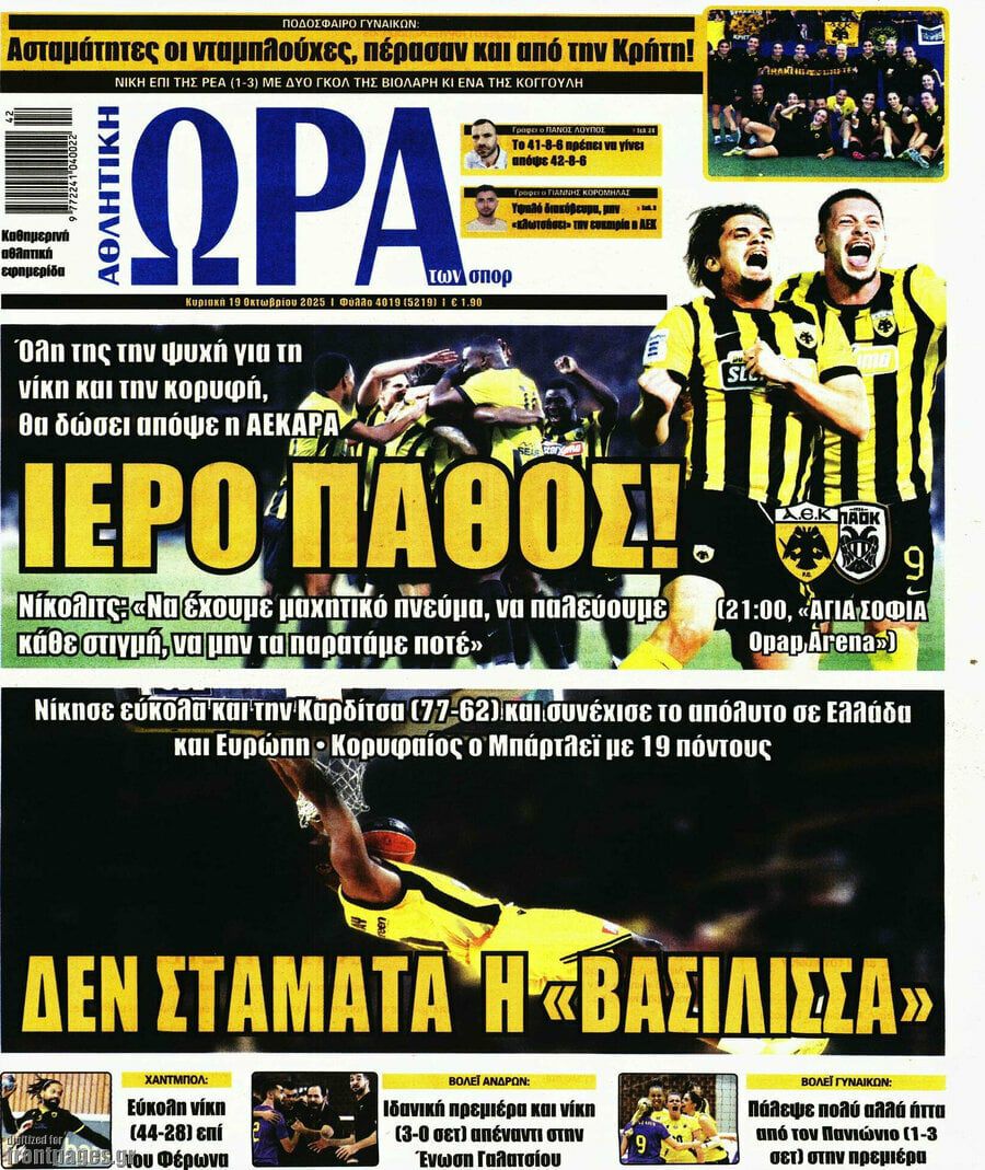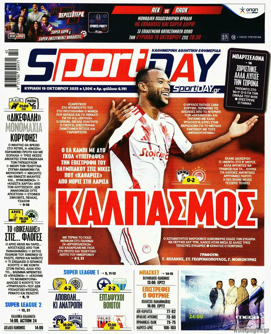 Τα σημερινά (19/10) πρωτοσέλιδα των αθλητικών εφημερίδων
