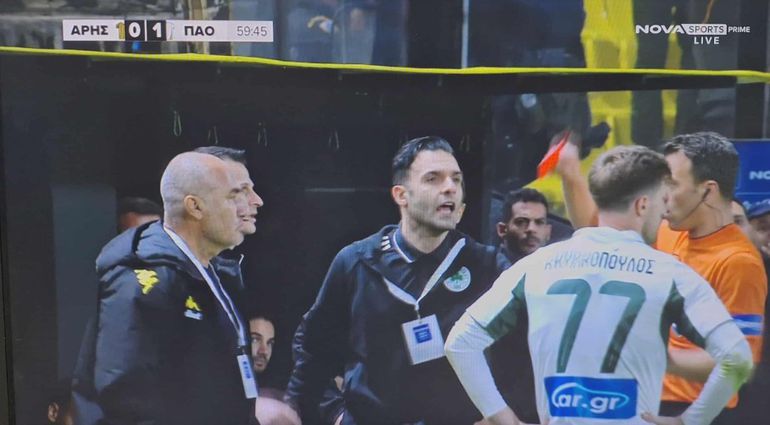 Μετά από ένταση που είχε με τον Τάσο Μουρατίδη, ο Γιώργος Τζαβέλλας είδε κόκκινη κάρτα στο Άρης - Παναθηναϊκός. Ο ίδιος ωστόσο κατευθύνθηκε στον πάγκο αντί να αποχωρήσει.