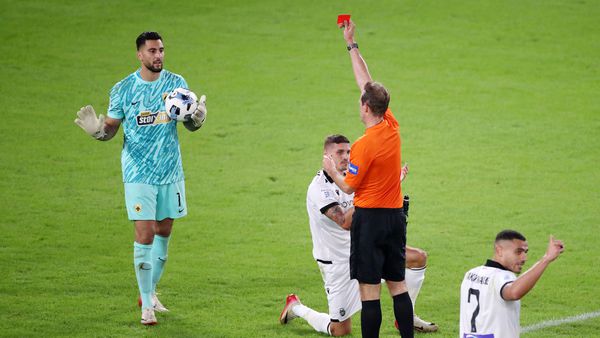Όσον αφορά την περίπτωση του πέναλτι, υπάρχει χέρι, υπάρχει παράβαση, αλλά δεν είναι εύκολο να το διακρίνει ο διαιτητής, έχοντας 10 σώματα μπροστά του. Γι' αυτό υπάρχει το VAR για να παρθεί στο τέλος η σωστή απόφαση. Έχουμε χέρι, έχουμε ανακοπή της μπάλας η οποία κατευθύνεται στο τέρμα, έχουμε από πίσω τον τερματοφύλακα, για αυτό δεν είναι κόκκινη κάρτα, αλλά κίτρινη.