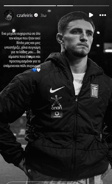 «Ένα μεγάλο ευχαριστώ σε όλο τον κόσμο που ήταν εκεί δίπλα μας και μας υποστήριξε. Χίλια συγγνώμη για το λάθος μου. Θα είμαστε πιο έτοιμοι και προετοιμασμένοι για το επόμενο και πάλι συγγνώμη», έγραψε ο 22χρονος μέσος στο ποστάρισμά του.