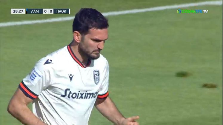 Ένα μακρινό σουτ, σχεδόν από τη σέντρα, επιχείρησε ο Κοντονίκος στο Λαμία - ΠΑΟΚ, με την προσπάθειά του να περνάει εκτός εστίας.
