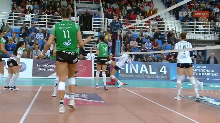 Ο Παναθηναϊκός επιβλήθηκε με 3-0 σετ του ΑΟ Θήρας και προκρίθηκε στον τελικό του final-4 του Κυπέλλου βόλεϊ γυναικών που διεξάγεται στην Άρτα.