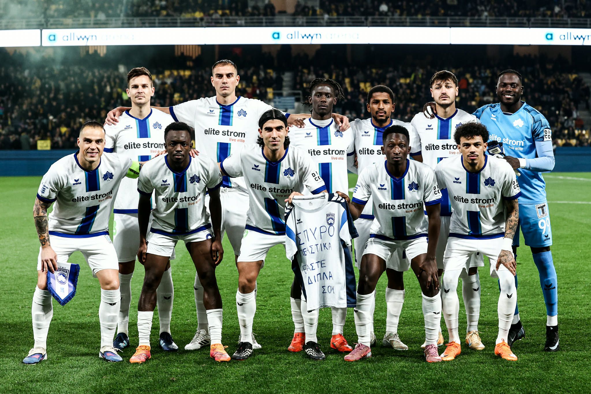 Πριν από την έναρξη της αναμέτρησης, οι παίκτες της αρχικής ενδεκάδας της Κηφισιάς κράτησαν μια μπλούζα με μήνυμα στήριξης στον Σπύρο, έναν πιστό φίλο της ομάδας και υποστηρικτή της εδώ και χρόνια, που περνάει τη δική του περιπέτεια τις τελευταίες ημέρες.