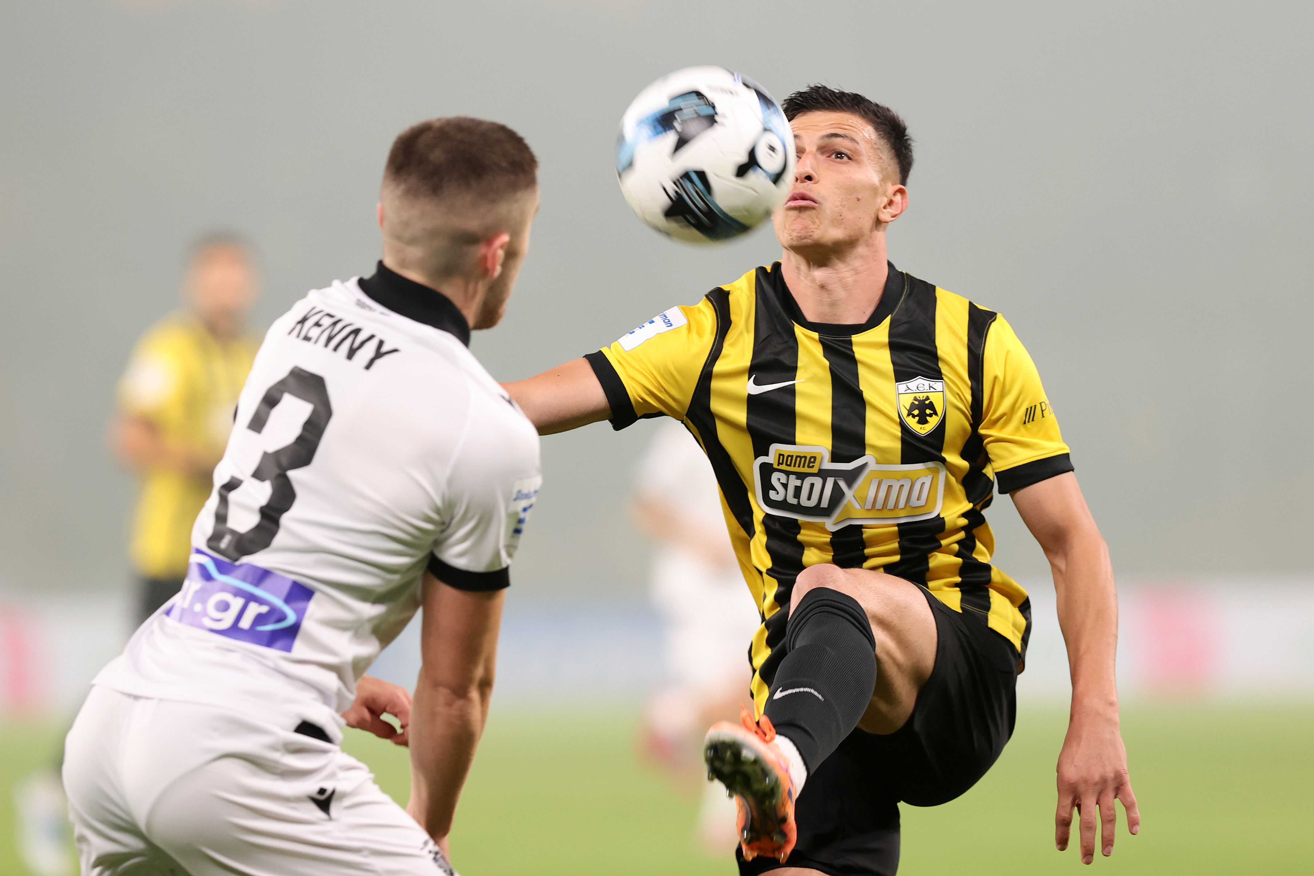 Φώναξαν για πέναλτι οι γηπεδούχοι σε πτώση του Πιερό, κόρνερ για την ΑΕΚ.