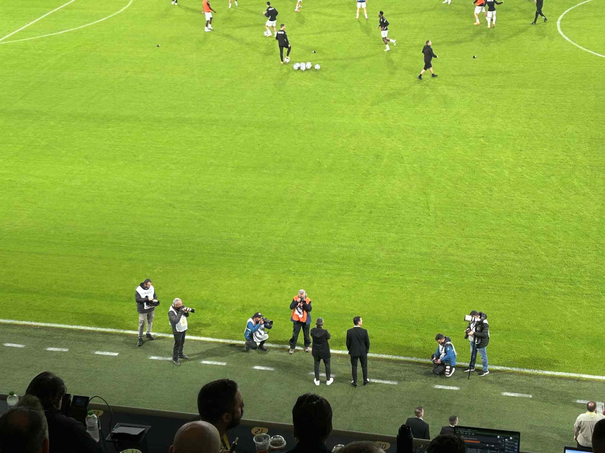 Οι τερματοφύλακες των δύο ομάδων έχουν βγει για ζέσταμα και η εξέδρα... ζεσταίνεται.