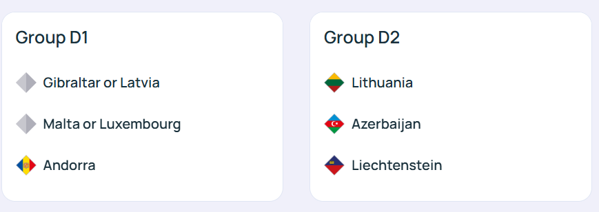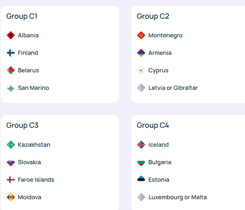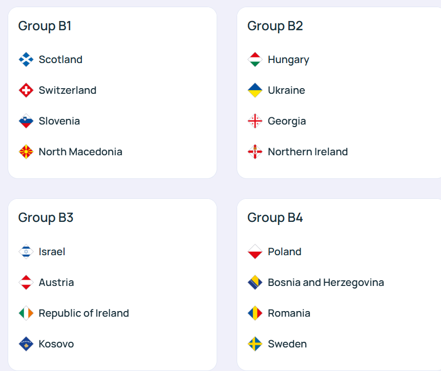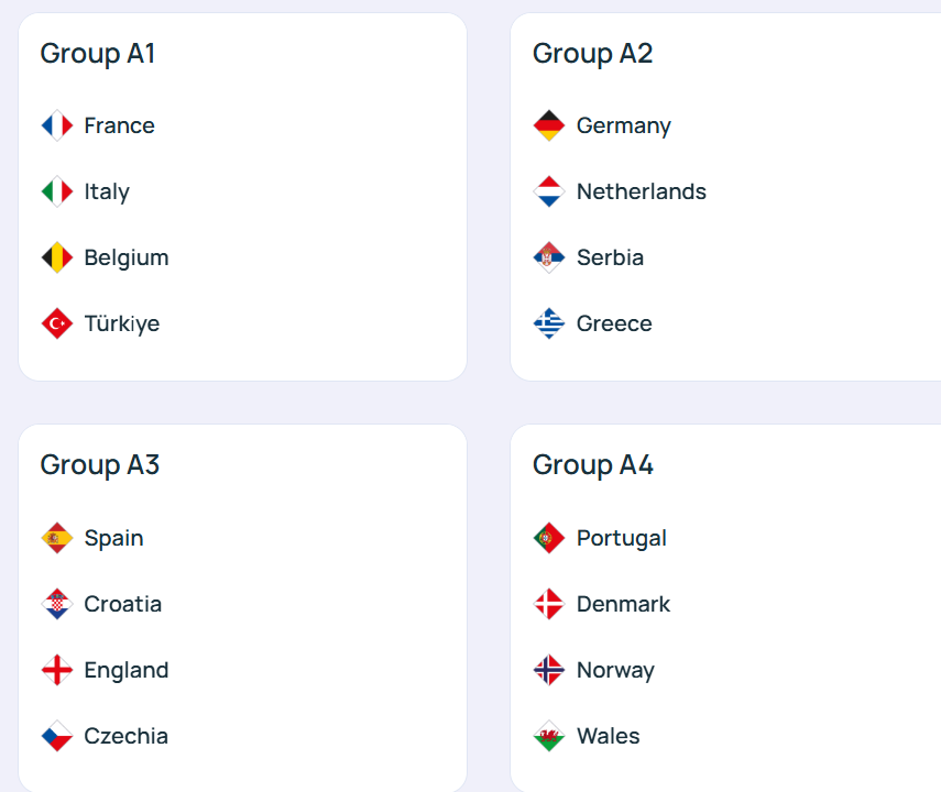 2ο γκρουπ: Οι ομάδες της League A που θα τερματίσουν στην 4η θέση, οι ομάδες της League B που θα τερματίσουν στην 1η-2η θέση