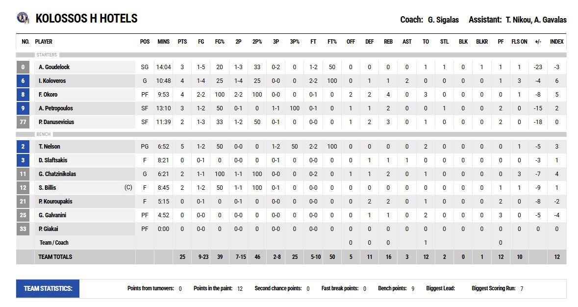 Τα στατιστικά του Κολοσσού στο ημίχρονο: