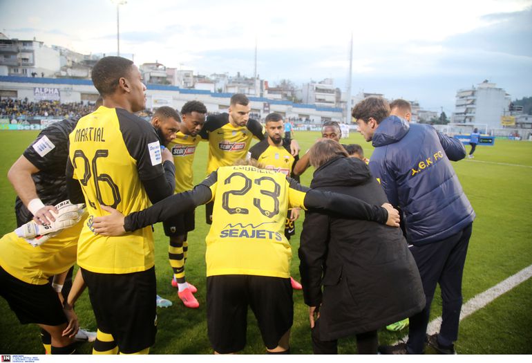 H σύνθεση της ΑΕΚ: Στρακόσα, Οντουμπάτζο, Μήτογλου, Μουκουντί, Πήλιος, Σιμάνσκι, Πινέδα, Λιούμπισιτς, Μαρσιάλ, Φερνάντες, Λιβάι Γκαρσία