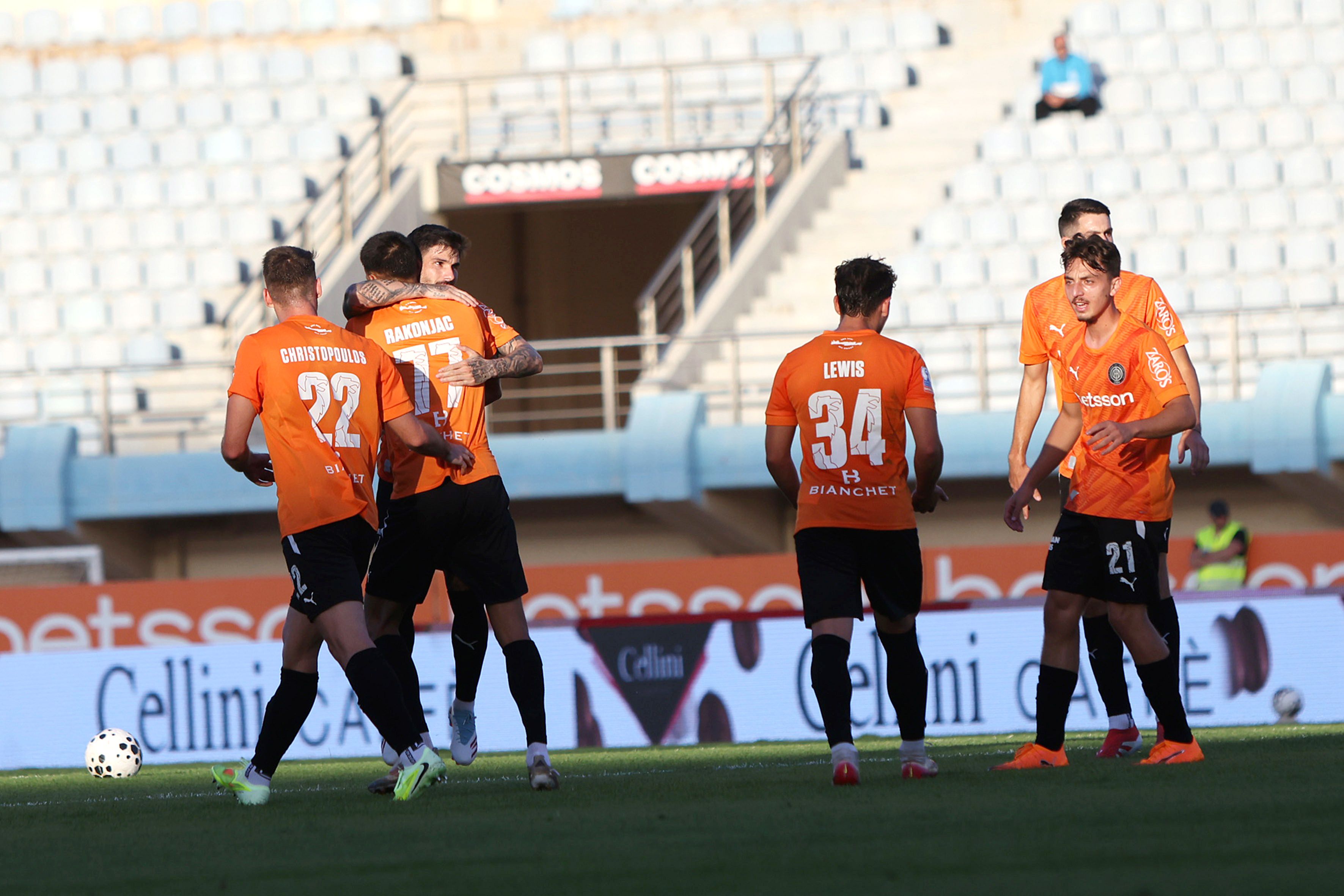 Μετά από εκτέλεση φάουλ, ο Καραχάλιος έκανε το γύρισμα με το κεφάλι και ο Ράκονιατς με κοντινό πλασέ έφερε το ματς στα ίσια για τους Κρητικούς.