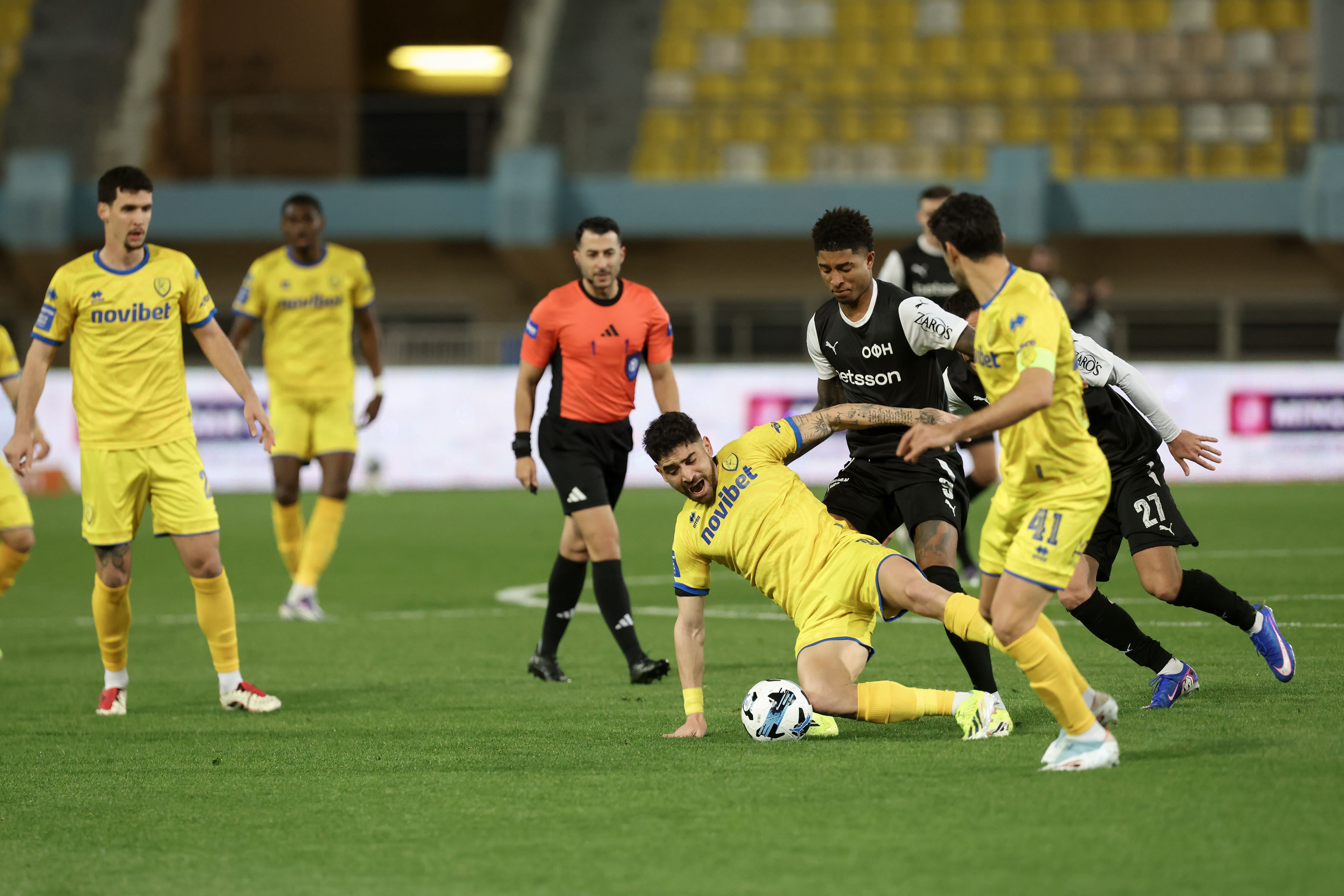 57΄ Στο έδαφος ο Ενκολόλο, στην αντίπαλη περιοχή, μετά από μονομαχία με τον Αποστολάκη.