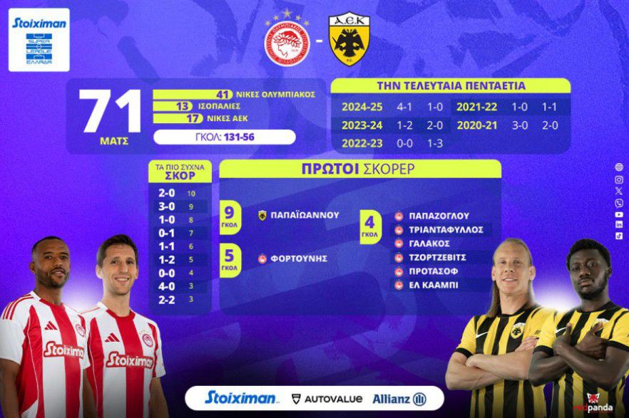 Τα δεδομένα εν όψει του Ολυμπιακός - ΑΕΚ από τη Stoiximan Super League: