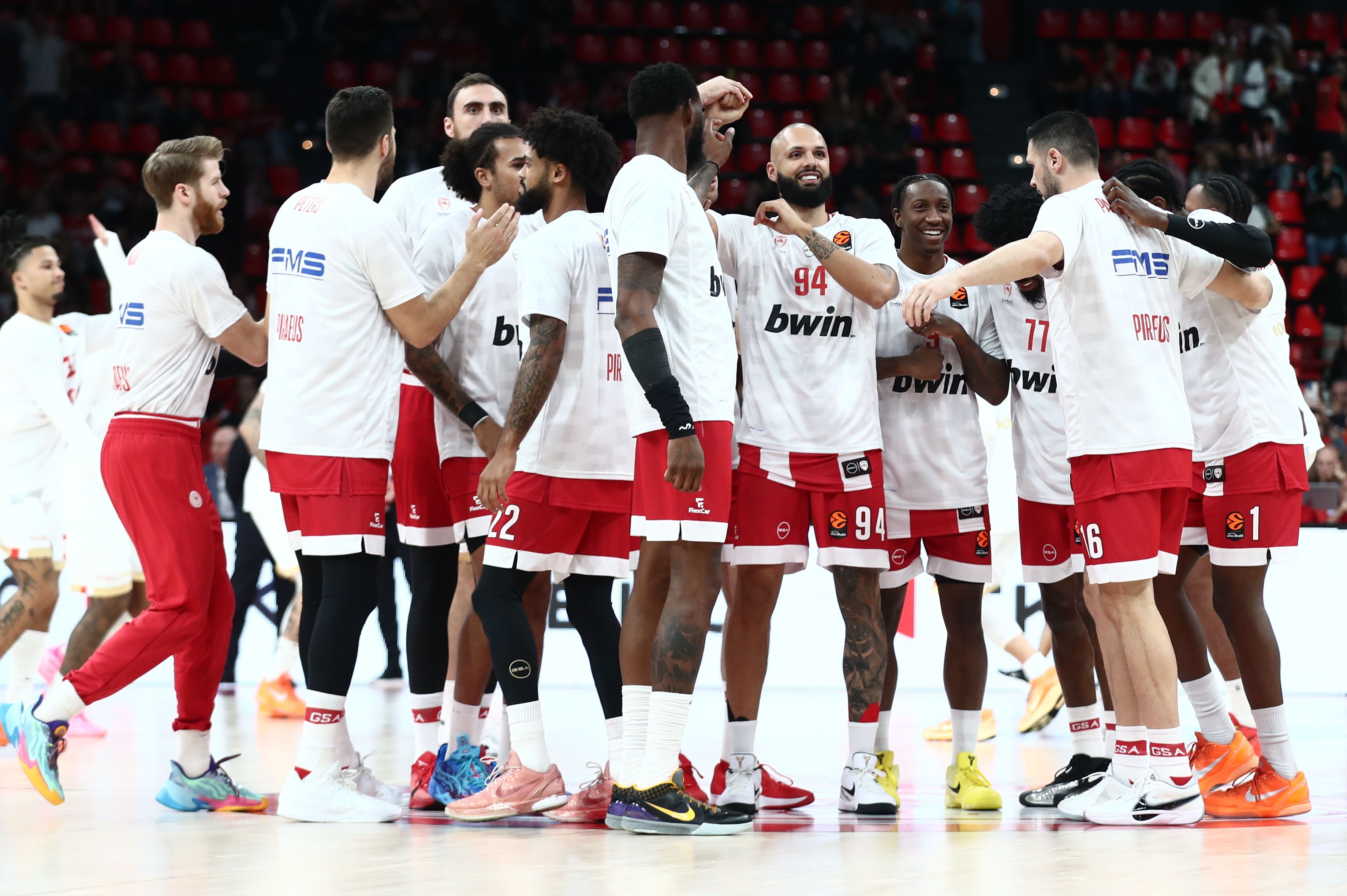 Στο παρκέ οι παίκτες του Ολυμπιακού και αποθέωση από τον κόσμο