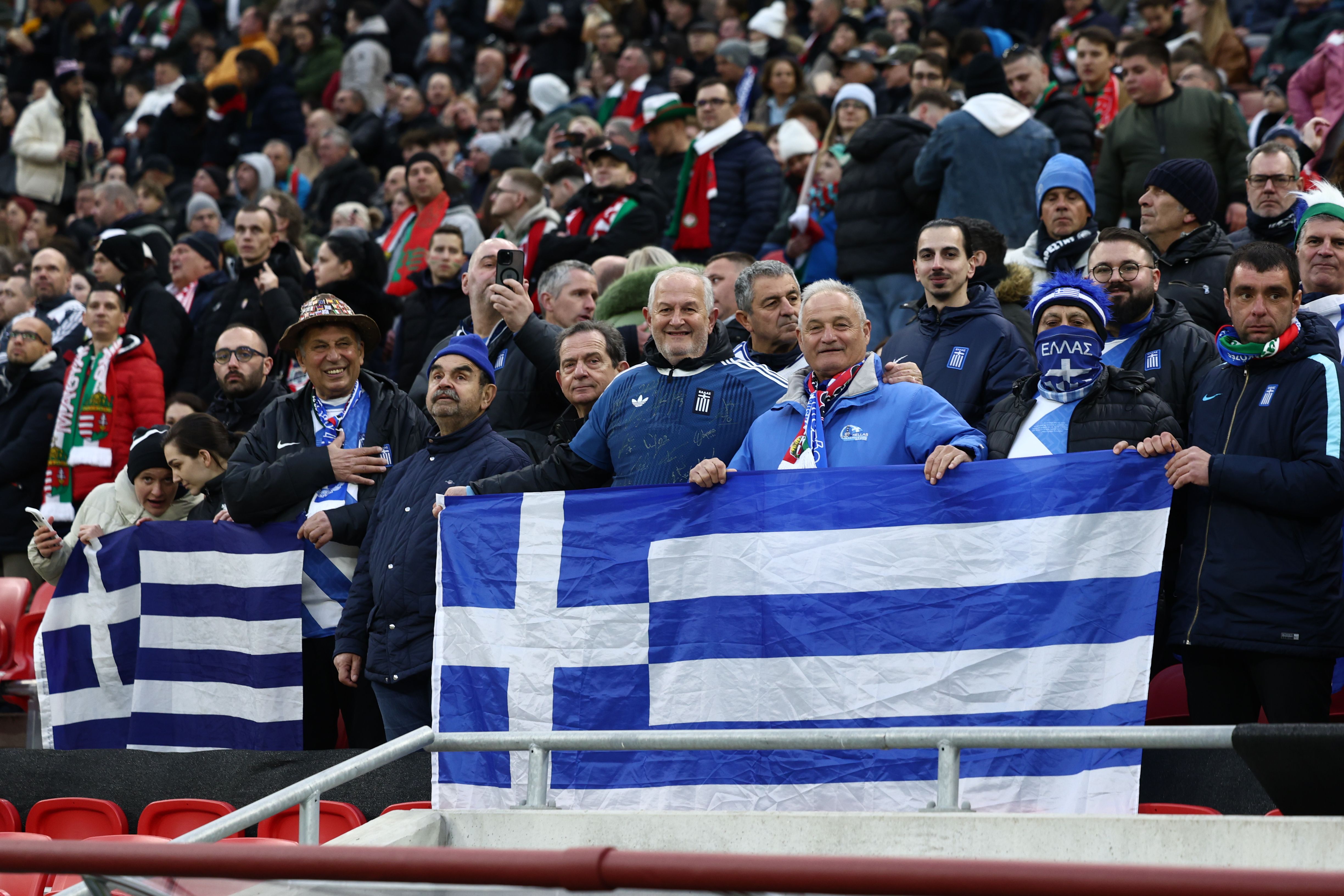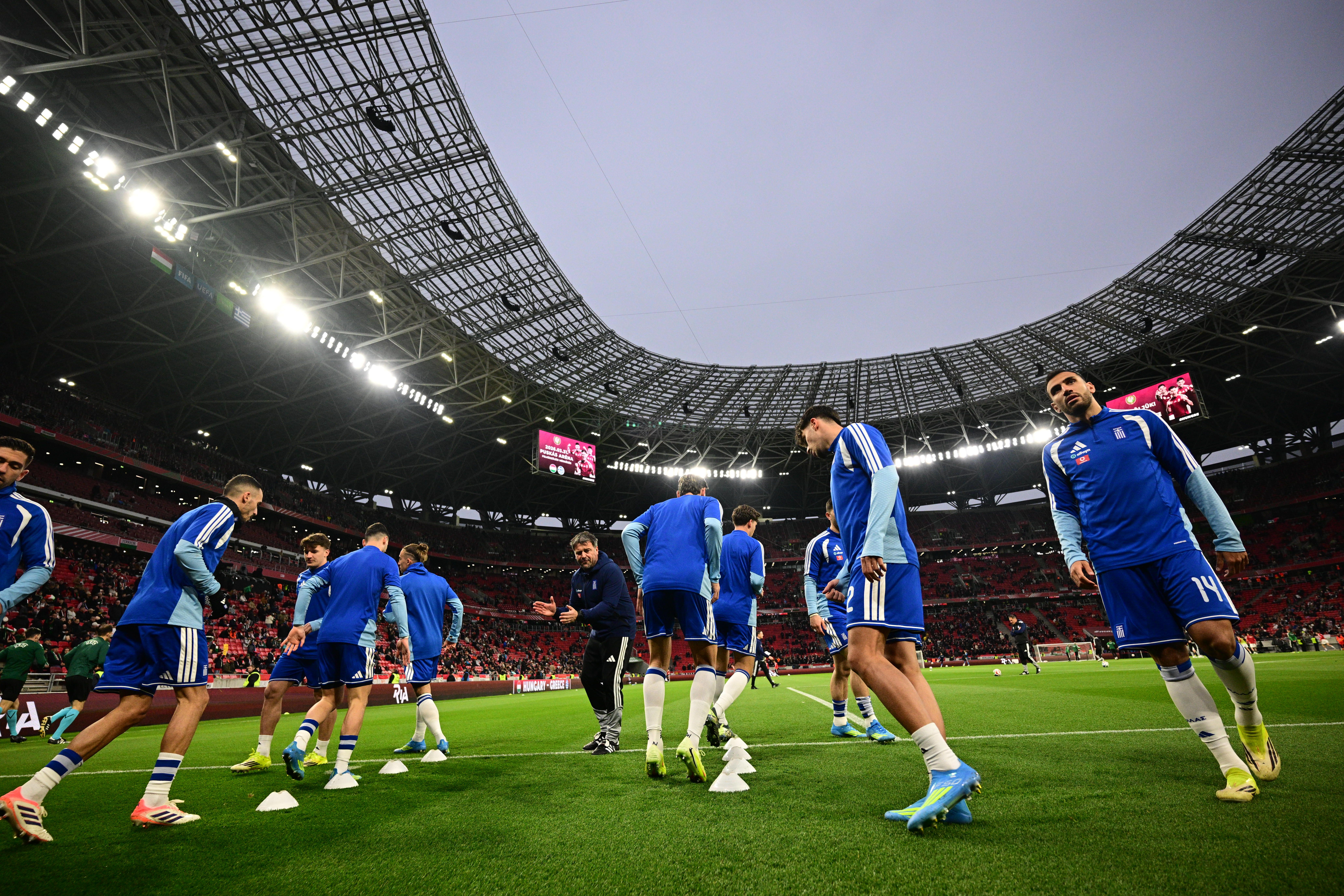 Περίπου 50.000 οπαδοί βρίσκονται στην Puskas Arena, έχοντας δημιουργήσει εντυπωσιακή ατμόσφαιρα.