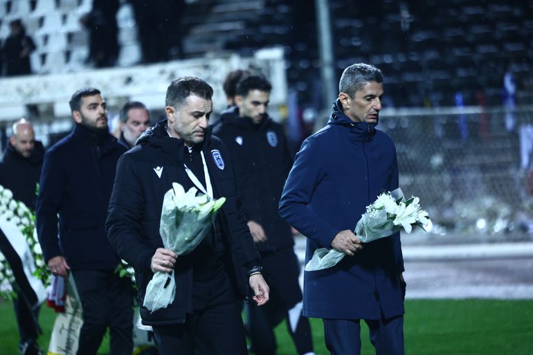 Οι παίκτες, προπονητές και άνθρωποι των αποστολών και των δύο ομάδων πήγαν μπροστά στη Θύρα 4 και άφησαν στεφάνια και λουλούδια στη μνήμη των επτά αετόπουλων.