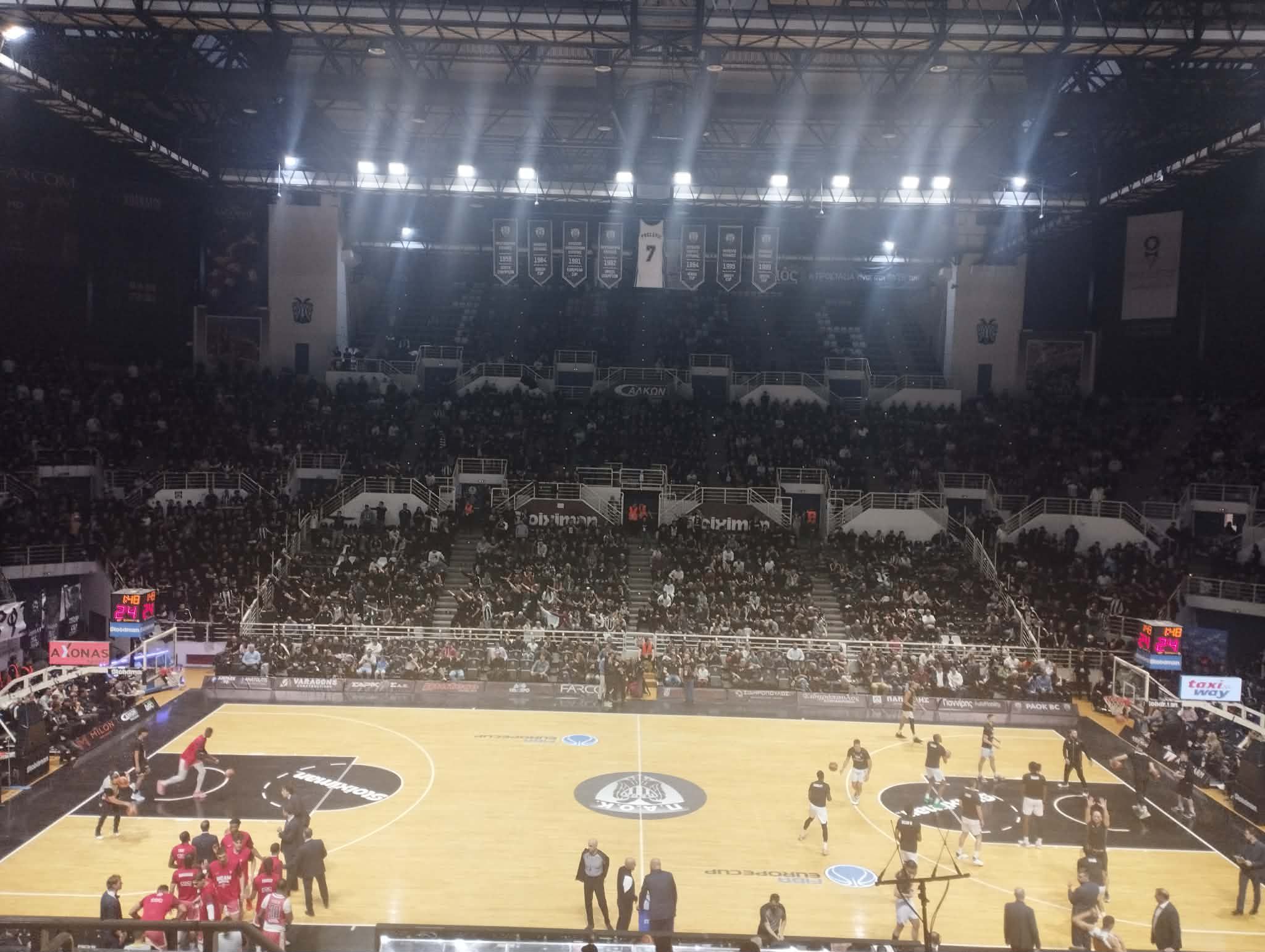 Ήδη στο γήπεδο βρίσκονται θρυλικές μορφές που φόρεσαν την φανέλα του ΠΑΟΚ στο παρελθόν όπως ο Ευθύμης Ρετζιάς και ο Χρήστος Τσέκος, που έκαναν την εμφάνισή τους στο Παλατάκι.Το παρών στο PAOK Sports Arena, δίνει και ο πρόεδρος του ΕΣΑΚΕ, Μιχάλης Μελής, που ταξίδεψε στη Θεσσαλονίκη, για να παρακολουθήσει τον κρίσιμο ημιτελικό του Δικεφάλου.