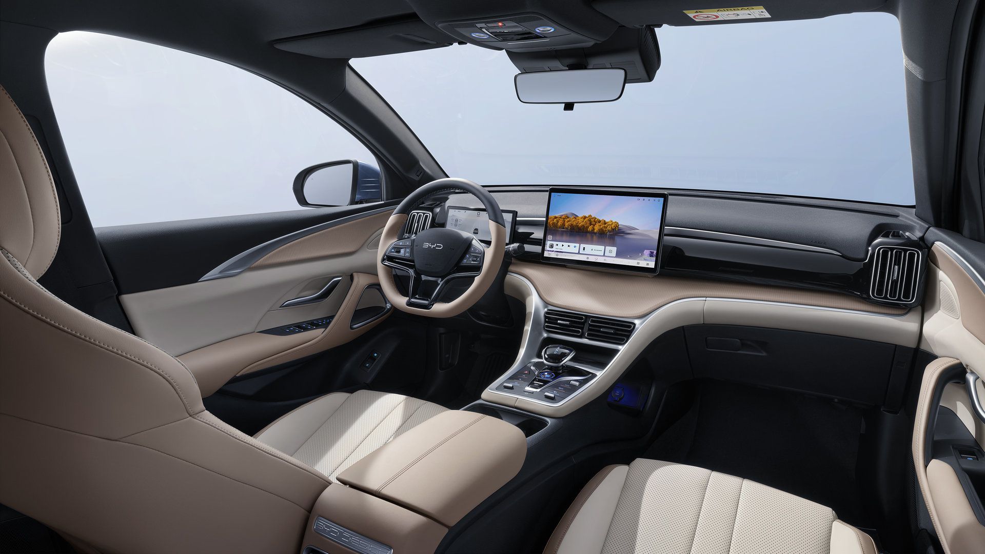 Το ταμπλό ενσωματώνει ψηφιακό πίνακα οργάνων 8,8” που εμφανίζει όλες τις βασικές πληροφορίες οδήγησης, καθώς και οθόνη αφής υψηλής ανάλυσης 12,8” με το σύστημα infotainment τελευταίας γενιάς της BYD. Το σύστημα υποστηρίζει φωνητικές εντολές «Hi BYD», ενσωματωμένη συνδεσιμότητα με smartphone Apple και Android, και προσφέρει χρήσιμες συντομεύσεις για βασικές λειτουργίες σε μια προσαρμόσιμη διεπαφή. Η θέρμανση και ο εξαερισμός μπορούν να ελεγχθούν εύκολα με κινήσεις τριών δακτύλων: δεξιά–αριστερά για την ταχύτητα του ανεμιστήρα και πάνω–κάτω για τη θερμοκρασία. Το σύστημα περιλαμβάνει δημοφιλείς εφαρμογές μουσικής/streaming και υποστηρίζει ενημερώσεις over-the-air (OTA), επιτρέποντας την προσθήκη νέων λειτουργιών με την πάροδο του χρόνου.