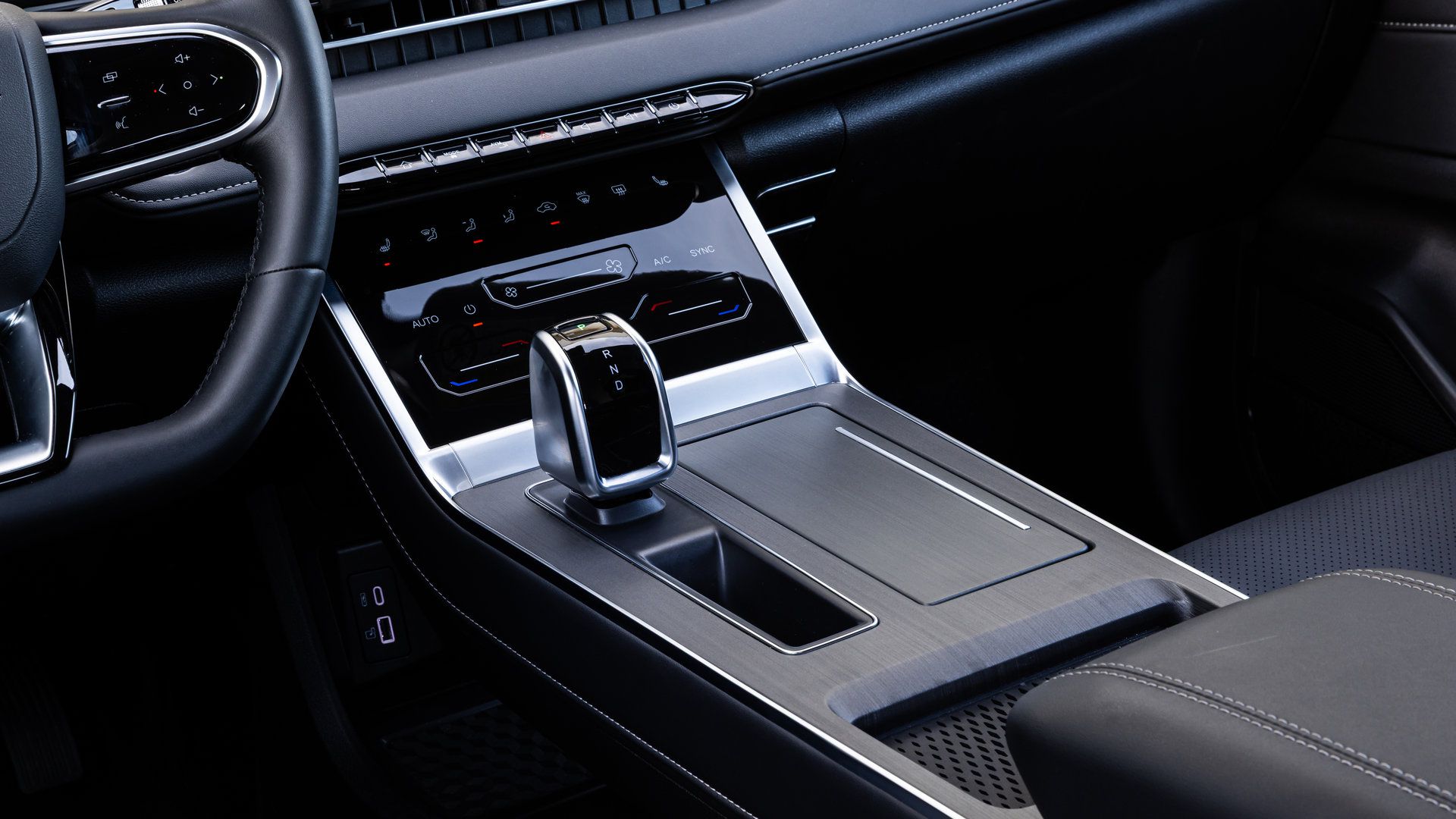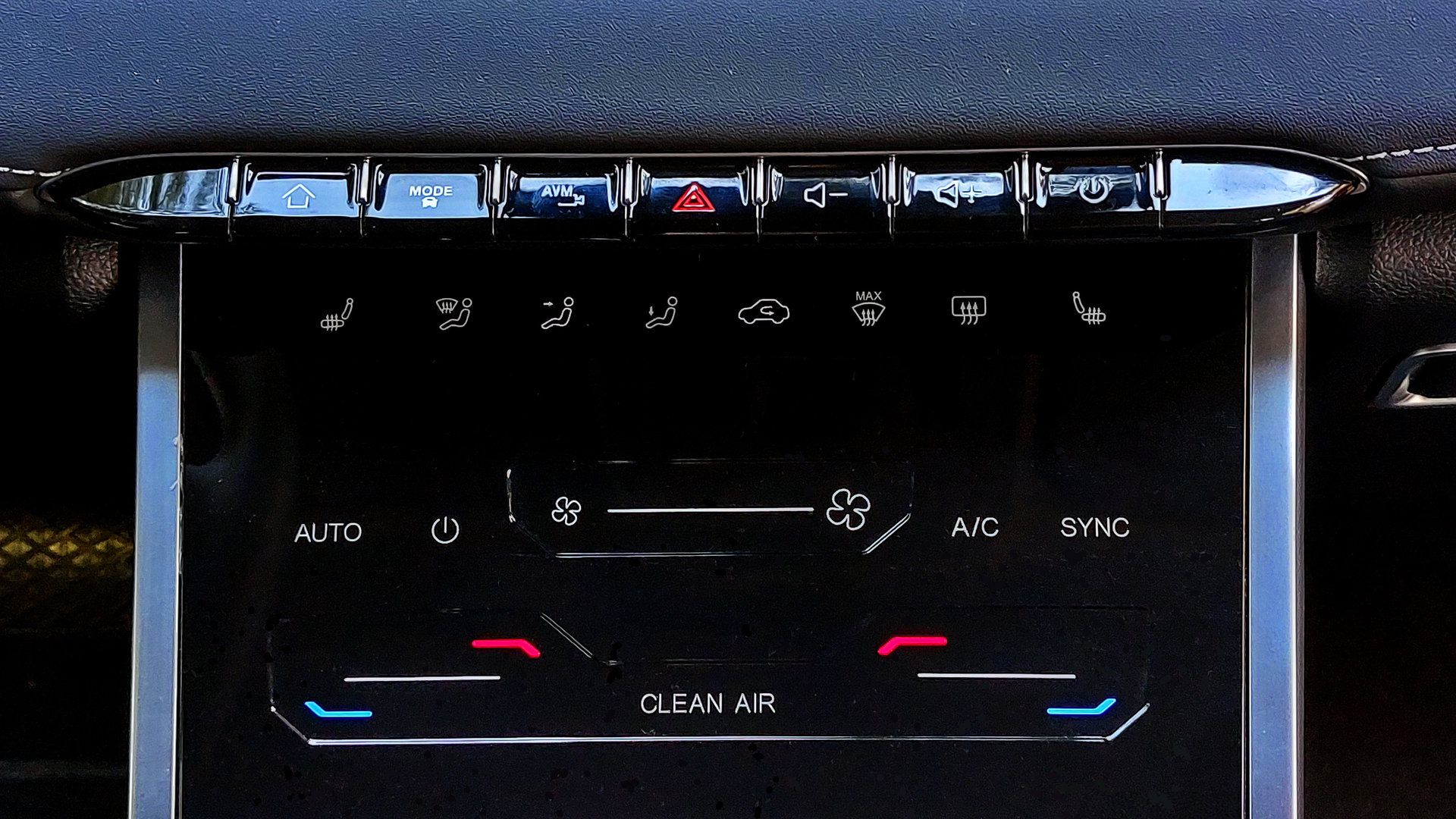 Ταυτόχρονα, το ταμπλό δύο επιπέδων χωρίζεται από μία ραβδωτή διακοσμητική φάσα που περιλαμβάνει τους αεραγωγούς του συστήματος κλιματισμού. Η μεγάλη κονσόλα δαπέδου διαθέτει στην κορυφή της ένα χρηστικό πάνελ αφής για τον χειρισμό όλων των λειτουργιών του διζωνικού κλιματισμού, ενώ λίγο πιο ψηλά συναντάμε και μια σειρά φυσικών πλήκτρων για την χρήση των αλάρμ, τα προγράμματα οδήγησης, την ένταση του ήχου κ.α.
