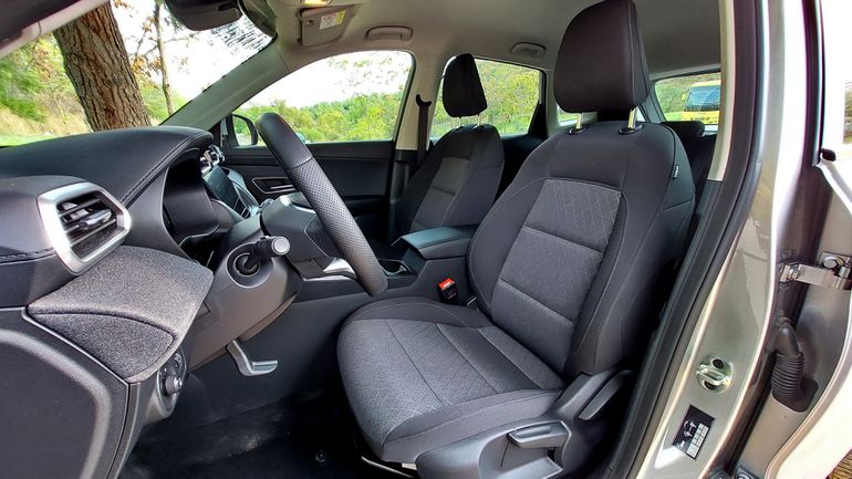 Στην όμορφη εικόνα του εσωτερικού συμβάλλει το μαλακό υλικό και η υφασμάτινη επένδυση στο επάνω μέρος του ταμπλό, οι ευχάριστες νότες χρωμίου στο τιμόνι, την κονσόλα και τους αεραγωγούς και η υπερυψωμένη κεντρική κονσόλα με τις πρακτικές θήκες.