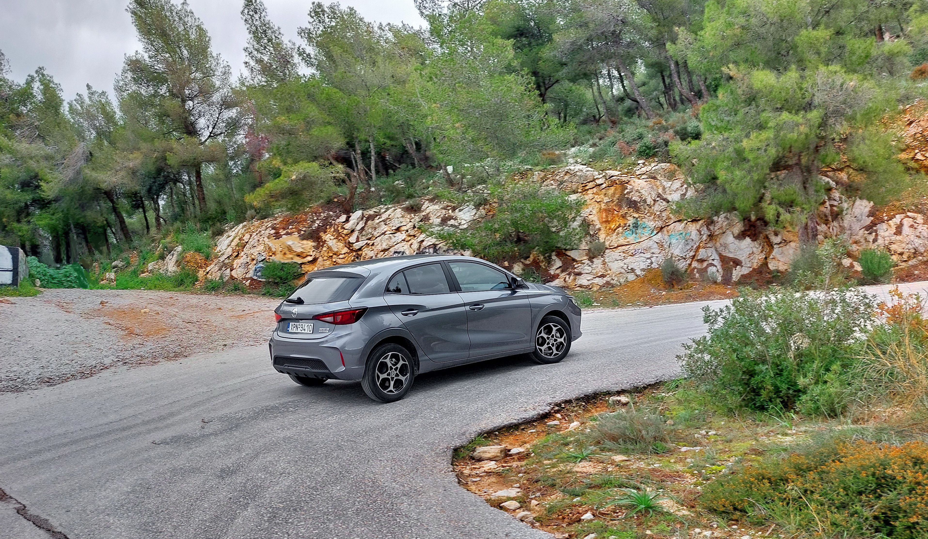 Όντως, στο σανίδωμα του γκαζιού το MG3 Hybrid+ εκτοξεύεται προς τα εμπρός, με ορμή που δεν περιμένεις από ένα υβριδικό σουπερμίνι με έμφαση στην οικονομία. Μην παρασυρθείς όμως και θεωρήσεις πως έχεις να κάνεις με κάποιο Gti. Αν πηγαίνεις για ώρα με το γκάζι συνεχώς στο πάτωμα (π.χ. σε ευθεία αρκετών χιλιομέτρων ή σε πίστα), σύντομα η μπαταρία θα αδειάσει και το σύστημα θα κόψει την ισχύ μέχρι να ανακτήσει μέρος του φορτίου της. Το σίγουρο πάντως είναι πως με το MG3 οι προσπεράσεις γίνονται ταχύτατα και με ασφάλεια, ενώ στα ταξίδια η μέση ωριαία ταχύτητα παραμένει υψηλή, ακόμη κι όταν το αυτοκίνητο είναι πλήρως φορτωμένο.