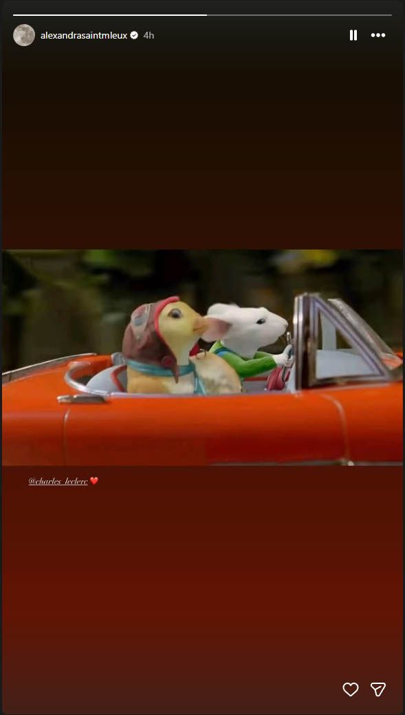 Επιπλέον, η σύζυγος του πιλότου της Ferrari μοιράστηκε μια φωτογραφία από την ταινία κινουμένων σχεδίων «Stuart Little 2», όπου οι χαρακτήρες βρίσκονται μέσα σε ένα κόκκινο αυτοκίνητο, παρόμοιο με την Testa Rossa στην οποία εμφανίστηκε το ζευγάρι, κάνοντας έναν παιχνιδιάρικο παραλληλισμό με τη δική τους ξεχωριστή ημέρα.
