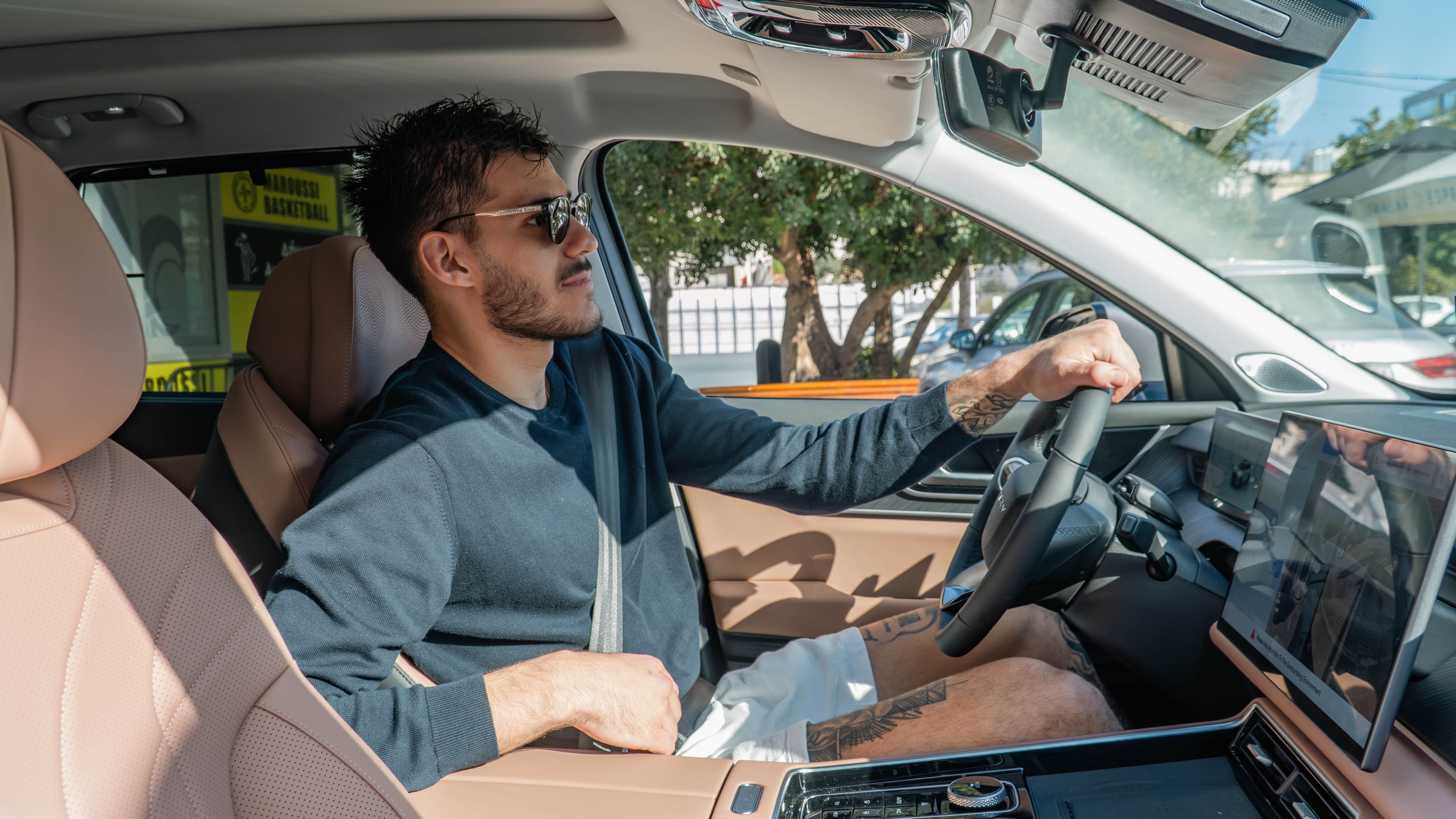 Ένα ευχάριστο διάλειμμα από το απαιτητικό πρόγραμμα προπονήσεων με το Μαρούσι Chery έκανε ο Γιώργος Καλαϊτζάκης. Από τη θέση του οδηγού στο Chery Tiggo 9, ο 27χρονος small forward εκτίμησε την πολυτέλεια, την άνεση και την ασφάλεια που προσφέρει το μεγάλο υβριδικό SUV.