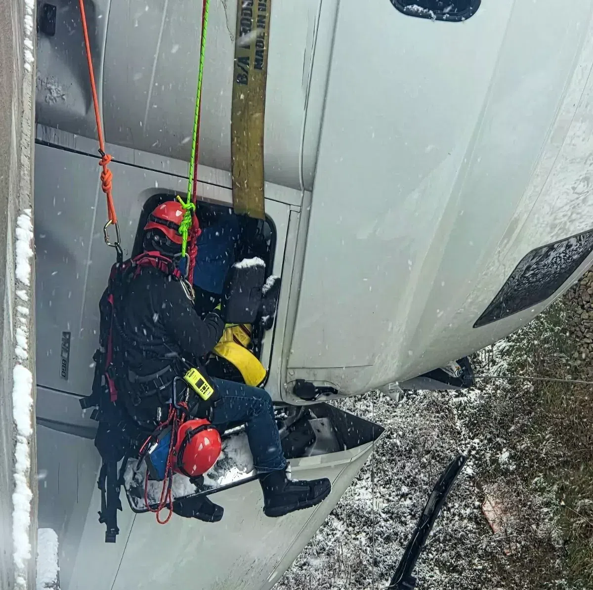 Η επιχείρηση διάσωσης ήταν κινηματογραφική. Οι διασώστες πέρασαν ιμάντες μέσα από τα πλαϊνά παράθυρα της καμπίνας για να το ασφαλίσουν προσωρινά. Στη συνέχεια ένας πυροσβέστης ασφαλισμένος σε σκάλα πυροσβεστικού οχήματος, κατέβηκε προσεκτικά μέχρι το φορτηγό, έδεσε τον εαυτό του με τον οδηγό και μαζί ανεβήκαν με ασφάλεια στην επιφάνεια.
