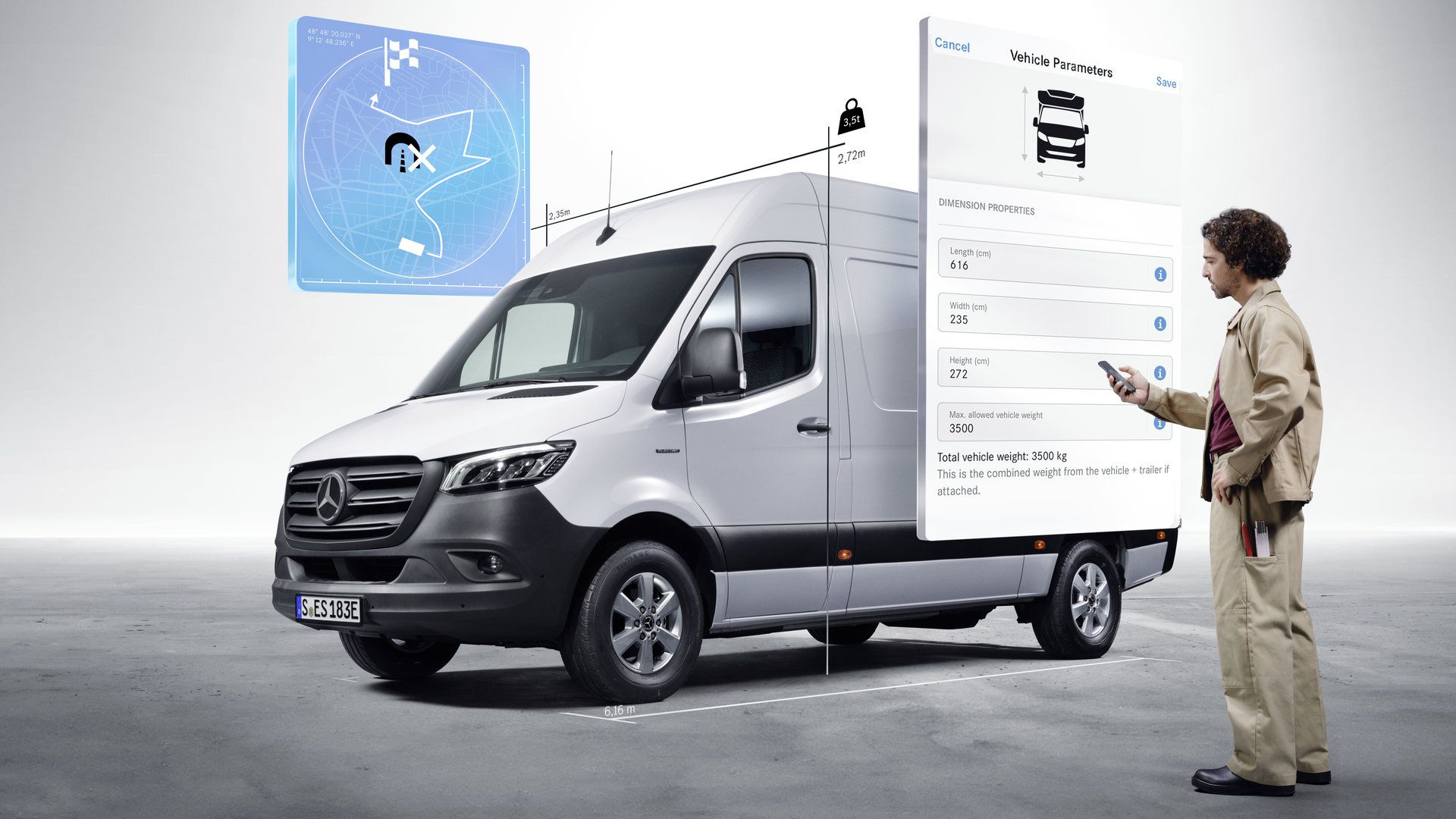 Τα ψηφιακά πρόσθετα πλοήγησης υποστηρίζουν τον ακριβή προγραμματισμό διαδρομών, λαμβάνοντας υπόψη την τρέχουσα κυκλοφορία, τις ενημερώσεις χαρτών και τις ανάγκες της καθημερινής επαγγελματικής δραστηριότητας. Ανάλογα με το όχημα και τον εξοπλισμό, τα ψηφιακά πρόσθετα πλοήγησης διατίθενται χωρίς χρέωση από την αγορά του οχήματος για διάρκεια τριών ή επτά ετών.
