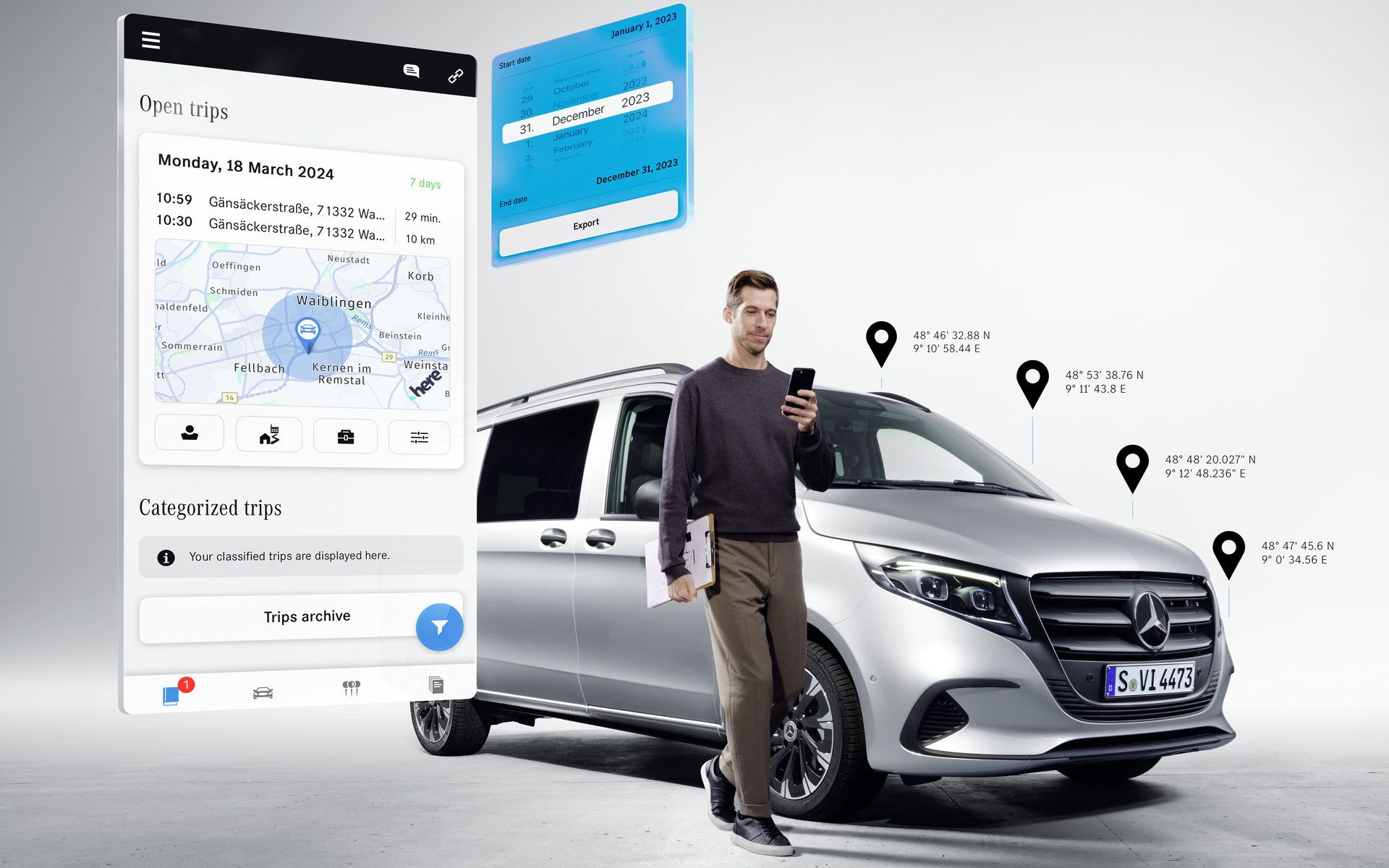 Τα ψηφιακά πρόσθετα επιτρέπουν στους επαγγελματίες να αξιοποιούν πλήρως τις δυνατότητες του επαγγελματικού Mercedes-Benz τους, παραμένοντας διαρκώς συνδεδεμένοι με το όχημα, όπου κι αν βρίσκονται. Μέσα από προηγμένες λειτουργίες, όπως ο προγραμματισμός προληπτικής συντήρησης, ο απομακρυσμένος χειρισμός βασικών λειτουργιών και η πλοήγηση με δεδομένα κυκλοφορίας σε πραγματικό χρόνο, τα ψηφιακά πρόσθετα συμβάλλουν στη βελτιστοποίηση της επιχειρησιακής καθημερινότητας.