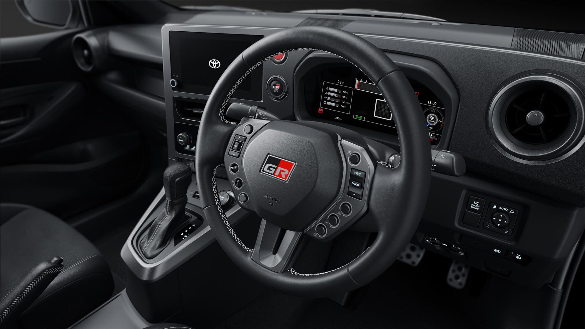Η νέα διάταξη των διακοπτών πάνω στο τιμόνι προέρχεται από την εμπειρία στον μηχανοκίνητο αθλητισμό, όπου οι οδηγοί συχνά στρίβουν το τιμόνι έως και 180 μοίρες χωρίς να αλλάζουν τη θέση των χεριών τους. Σε παραδοσιακά τιμόνια, κάτι τέτοιο μπορεί να προκαλέσει τυχαίο πάτημα κουμπιών, ενώ στο GR Yaris τα κουμπιά έχουν τοποθετηθεί μακριά από τα χέρια του οδηγού, αποτρέποντας αυτό το ενδεχόμενο.