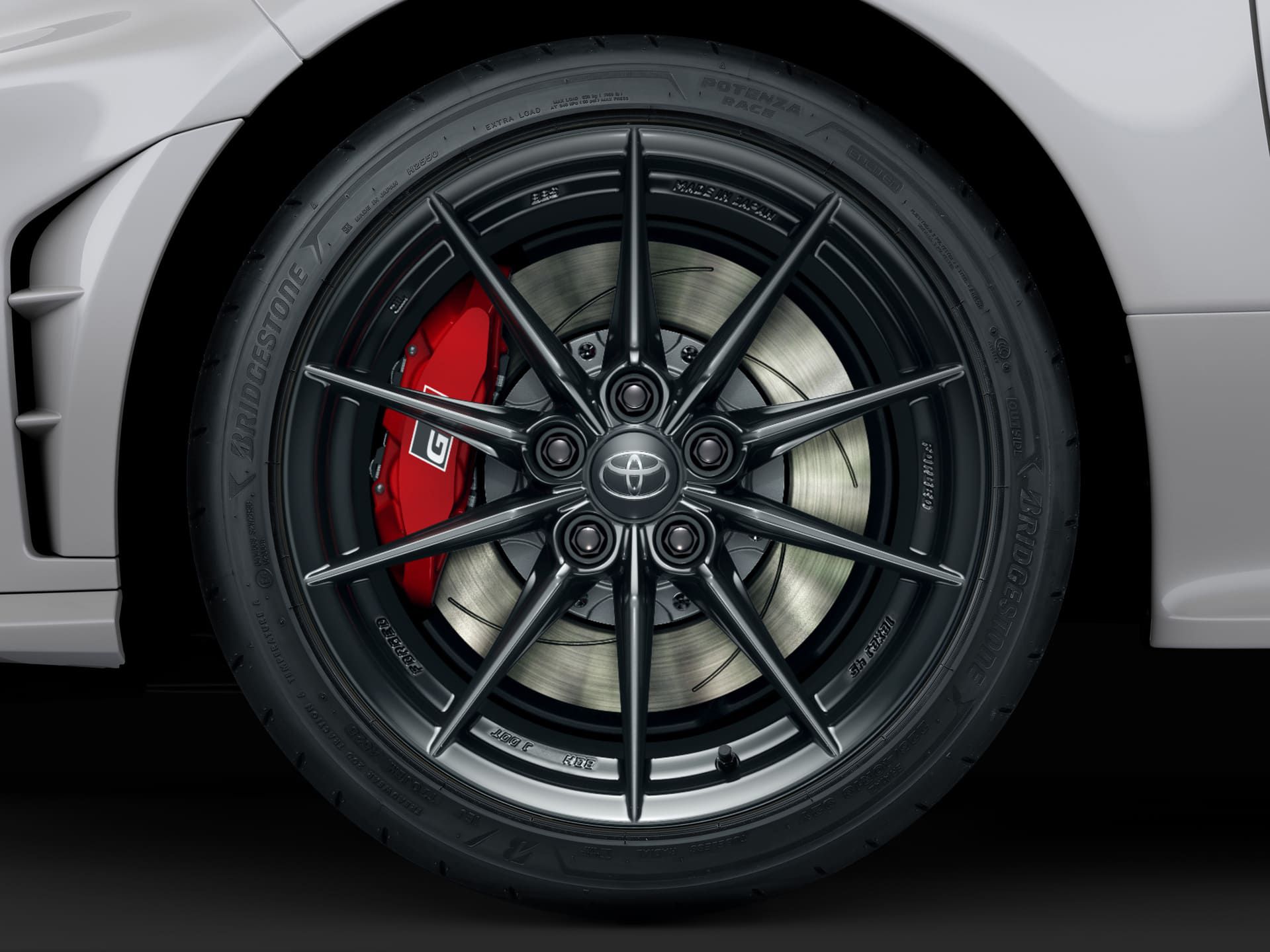 Για να αξιοποιηθεί πλήρως η επιπλέον πρόσφυση, έχουν ρυθμιστεί εκ νέου τα εμπρός και πίσω αμορτισέρ. Βασισμένο στην εμπειρία της TGR από τη χρήση ελαστικών υψηλής πρόσφυσης σε αγώνες όπως το Super Taikyu και το Ιαπωνικό Πρωτάθλημα Ράλλυ, έχει αναβαθμιστεί και το ηλεκτρικό σύστημα υποβοήθησης διεύθυνσης (EPS). Το εύρος λειτουργίας της υποβοήθησης, ακόμη και κατά το έντονο φρενάρισμα ή τις στροφές με υψηλό φορτίο, έχει επεκταθεί χάρη στη βελτιωμένη ακαμψία της αντιστρεπτικής δοκού, στον αισθητήρα ροπής και στην αναβάθμιση του λογισμικού ελέγχου.