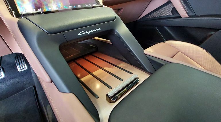 Οι χώροι είναι μεγάλοι και οι πίσω επιβάτες έχουν στην διάθεσή τους κεντρική οθόνη για την ρύθμιση της επιθυμητής θερμοκρασίας και την λειτουργία των κλιματιζόμενων καθισμάτων. Ταυτόχρονα, τόσο το έδρανο όσο και η πλάτη του διαιρούμενου πίσω καθίσματος διαθέτει ηλεκτρική ρύθμιση, ανάλογα με τον χώρο που χρειάζεται για τα γόνατα ή τις αποσκεύες. Ο τελευταίος είναι ούτως ή άλλως πολύ μεγάλος και έχει χωρητικότα 780 λίτρα. Ταυτόχρονα όμως, ο ιδιοκτήτης της νέας Cayenne έχει στη διάθεσή του και εμπρός χώρο αποσκευών (frunk) 90 λίτρων για την αποθήκευση των καλωδίων φόρτισης και ορισμένων χειραποσκευών.