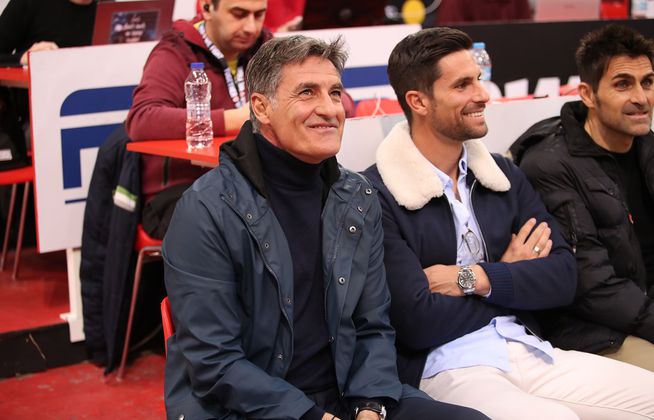 Ο προπονητής του Ολυμπιακού παρακολουθεί δια ζώσης τον αγώνα της ομάδας μπάσκετ κόντρα στην Ρεάλ Μαδρίτης.