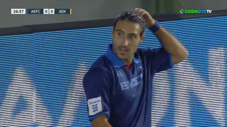 Ο Μεντιέτα βρέθηκε στο δεύτερο δοκάρι και παραλίγο να κάνει το 1-1 στο ΑΕΚ - Βόλος, όμως η προσπάθειά του κατέληξε πάνω από την εστία.
