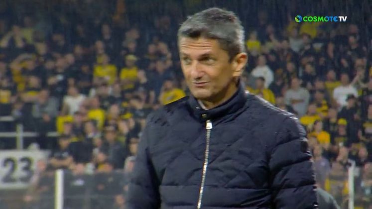 VIDEO Η επιστροφή του... σκούφου για τον Λουτσέσκου μετά τη βροχή στην «OPAP Arena»