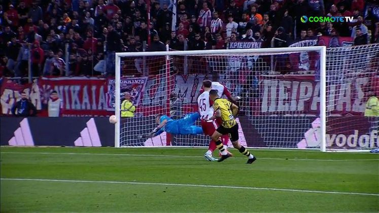 Ο Χουάνγκ στο 7' πλησίασε το 1-0 για τον Ολυμπιακό κόντρα στην ΑΕΚ.